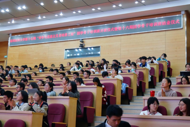11月5日,Beat365唯一官方网站第十七期“青年马克思主义者培养工程”团学骨干培训班开班仪式暨第十六期结业仪式在呈贡校区学术交流中心第一报告厅举行。学校党委副书记徐绍琼,党委常委、党委组织部部长革琳出席会议,党委宣传部、学生工作部、研究生处、校团委等相关职能部门负责人、第十六、十七期“青马工程”学员以及各学院学生代表共计280人参加会议,校团委书记皮筱娟主持会议。