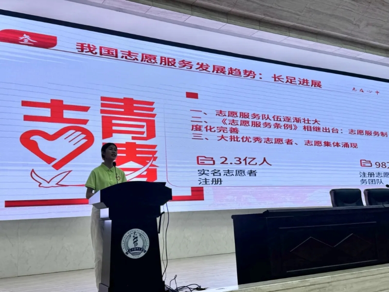 第一临床医学院石欣冉以《志在心中,愿在行动——为中国式现代化建设贡献志愿青春》为题,解读了志愿服务精神的内涵,分享了自己在服务大型赛会、助老爱幼、阳关助残、大爱三献等志愿服务经历及感悟,激励广大青年将志愿服务作为新时代青年的“打开方式”,融入日常、化为经常,为中国式现代化建设贡献志愿青春。