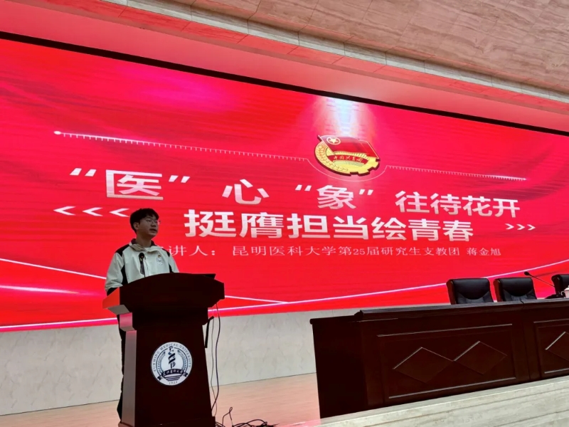 临床肿瘤学院鲁成斌以《等不是办法,干才有希望——“西畴精神”宣讲》为题,分享了他作为云南省“青马工程”基层班学员的学习所得,讲述了西畴人民用自己双手和毅力闯出一片生存发展新天地的故事,激励昆医青年深刻领会西畴精神的内涵,以实际行动传承发扬西畴精神,展现新时代青年的担当与作为。