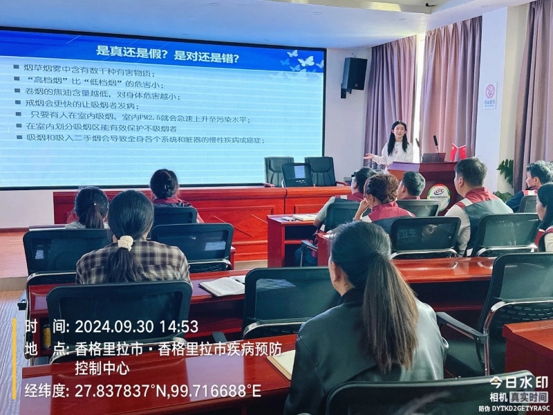在健康教育方面,温雅婷针对香格里普遍存在的抽烟问题,运用所学的知识对疾控中心人员开展了一场控烟讲讲座。在了解到抽烟在高中生群体中也同样普遍后,她去到当地一所高中,了解学生们抽烟的原因,结合高中生好奇、讲哥们义气等特点针对性地开展了一场控烟讲座。