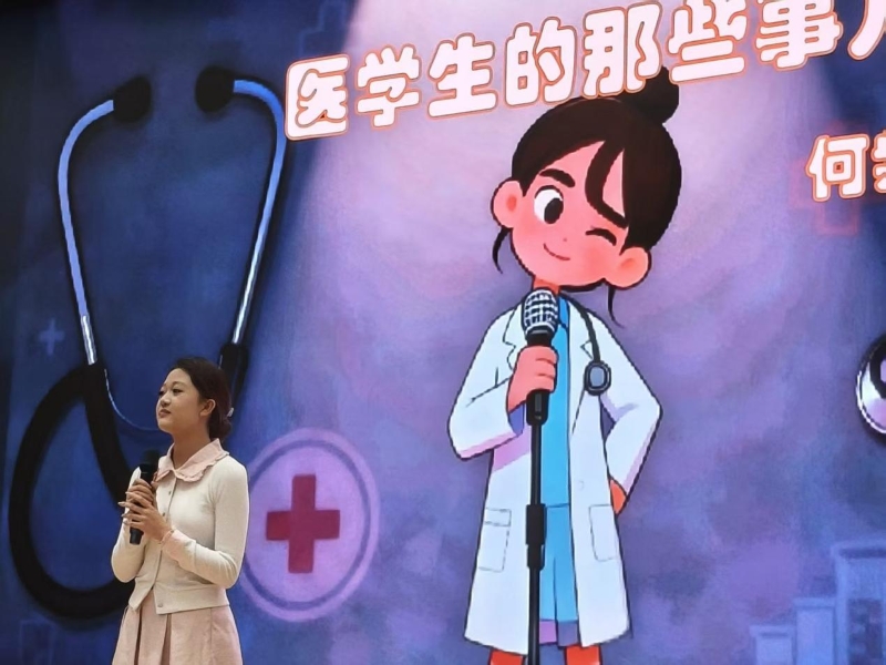 经过前期初赛和复赛,共有10位选手晋级决赛。决赛共设置2个环节,第一个环节为“青春成长”脱口秀,选手们以医学生学习生活为背景,围绕学习考研、临床见习、人际相处等话题,讲述一个个轻松幽默的“段子”,展现独属于医学生的青春成长故事,引发全场观众的共鸣与思考。