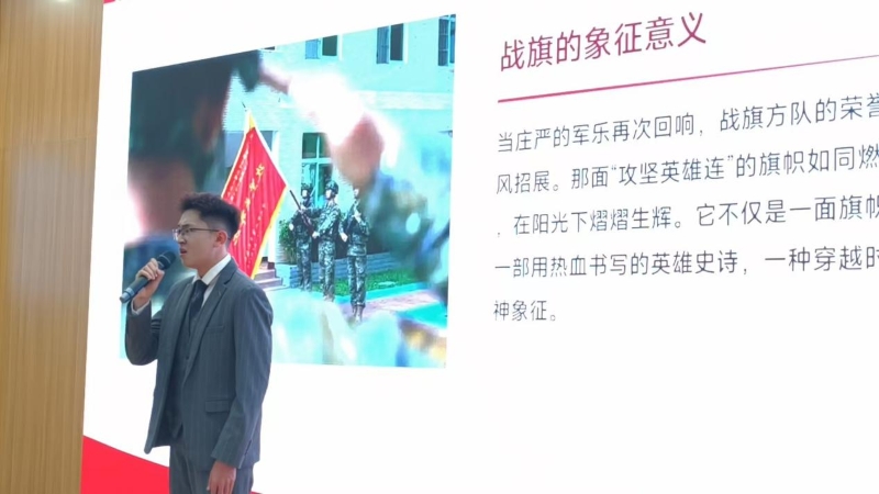 第二个环节为“纪念中国人民抗日战争胜利80周年” 主题宣讲。选手们通过纪念中国人民抗日战争暨世界反法西斯战争胜利80周年阅兵式战旗方阵中具有代表性的“黄崖洞保卫战英雄团”“平型关大战突击连”“夜袭阳明堡战斗模范连”“攻坚英雄连”“狼牙山五壮士”“杨靖宇支队”“朱德警卫团”“地道战模范连”“华南游击队”“东北抗联教导旅”等光荣事迹,讲述背后的英雄故事和时代精神,感召观众铭记历史、珍爱和平。