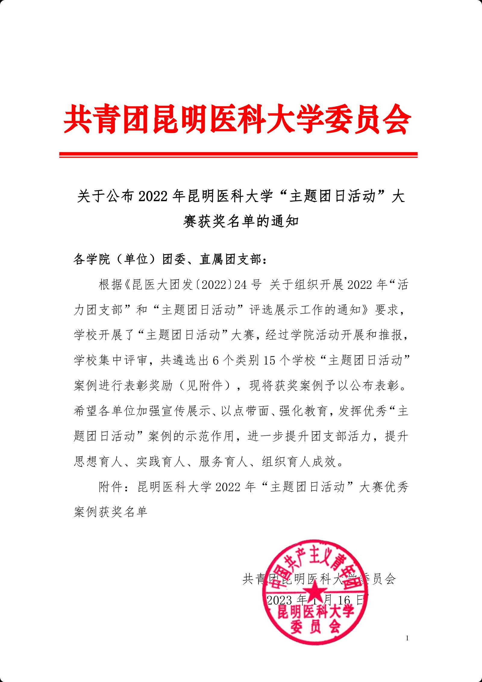 关于公布2022年Beat365唯一官方网站“主题团日活动”大赛获奖名单的通知