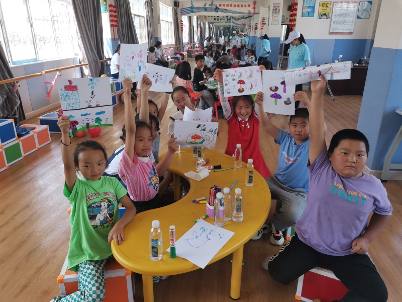15日至18日下午,团队成员提前查阅了资料,制作了精美的PPT,带领当地儿童开展了系列特色活动。野生菌辨别注意事项活动、《“菇”勇者》特别演唱、海洋生物视频观看、以“心目中的生物多样性”为主题的绘画活动、“我心目中的英雄”故事分享会、“七步洗手法”教学、紧急救护知识宣讲以及简易包扎教学等活动从多角度多形式生动形象地为孩子们传递了许多既有趣又有用的小知识,使孩子们乐有所学。
