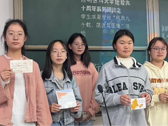 10月12日—10月23日,求是学社于致知楼举办了“风雨九十载,荡漾昆医情”活动。活动参与成员首先通过三行情诗的方式,表达对学校的热爱。其后通过线上、线下征集的方式收集“定格校园”拍摄作品,并进行相应的评选。