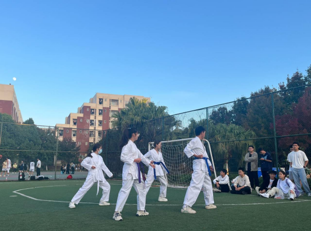10月26日,空手道协会于东苑小足球场开展了传承空手道武道精神活动。活动过程中组织开展了格挡表演,以及对空手道部分招式进行体验和学习。