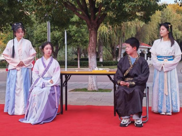11月12日,四维牛角话剧社于呈贡校区学生会堂广场开展了“品宋韵,涵风骨”传统文化话剧演出。表演人员在活动过程中表演了话剧《李清照》,向观众展示了词人李清照曲折的一生。