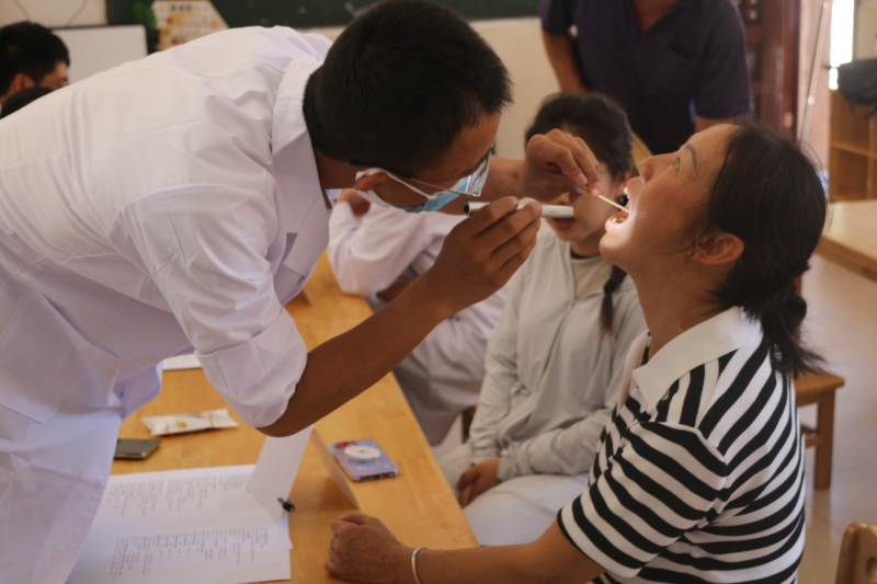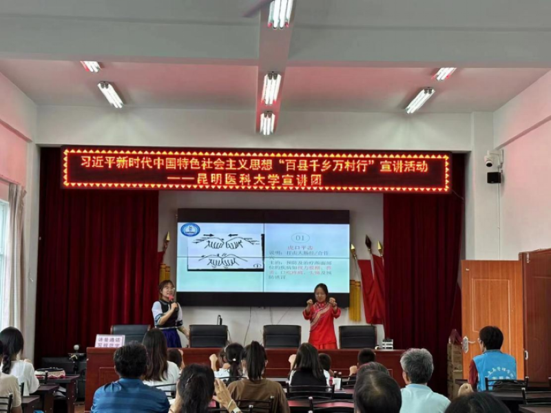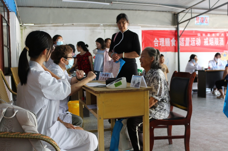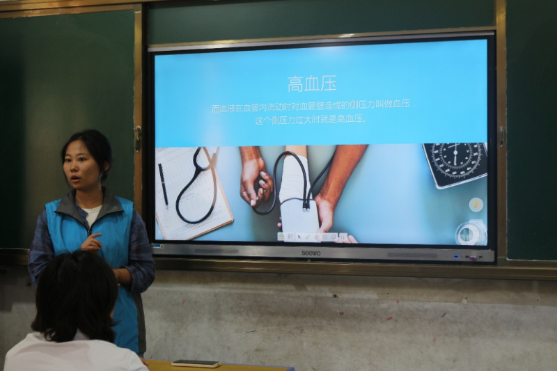(社团成员刘思雨在那柯里村为居民宣讲高血压与高血脂知识)
