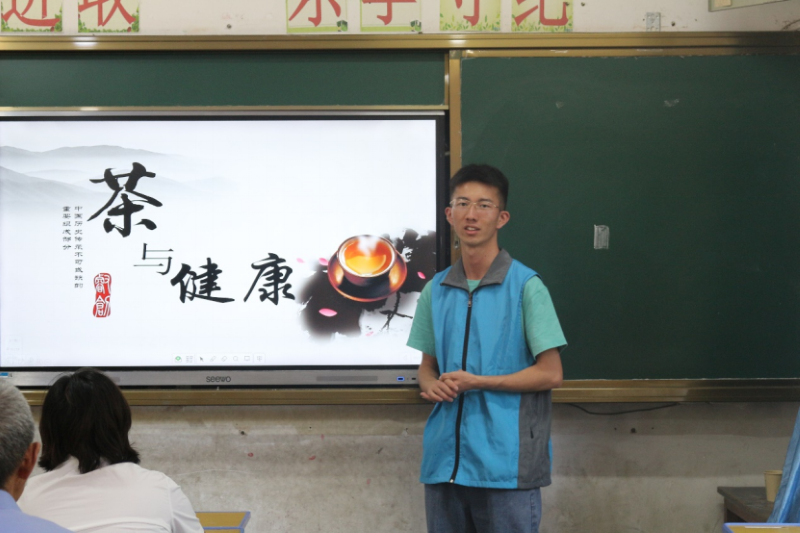 (社团成员赵德龙在那柯里村为居民宣讲茶与健康)