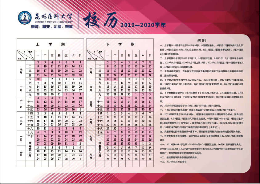 Beat365唯一官方网站2019-2020学年校历
