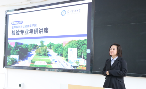 讲座由第二临床医学院学生办公室陈江老师主持。首先由生命科学与检验医学学院副院长李庆蓉老师介绍学院的概况与师资队伍,详细阐述了近年来临床检验诊断学研究生招生情况,包括招生规模、专业分布及演变趋势,让同学们对考研形势有了清晰的认识。此外,李老师还对比研究生与本科生的就业前景,鼓励同学们树立考研目标,迎接挑战,通过努力学习实现自己的人生理想和职业目标。