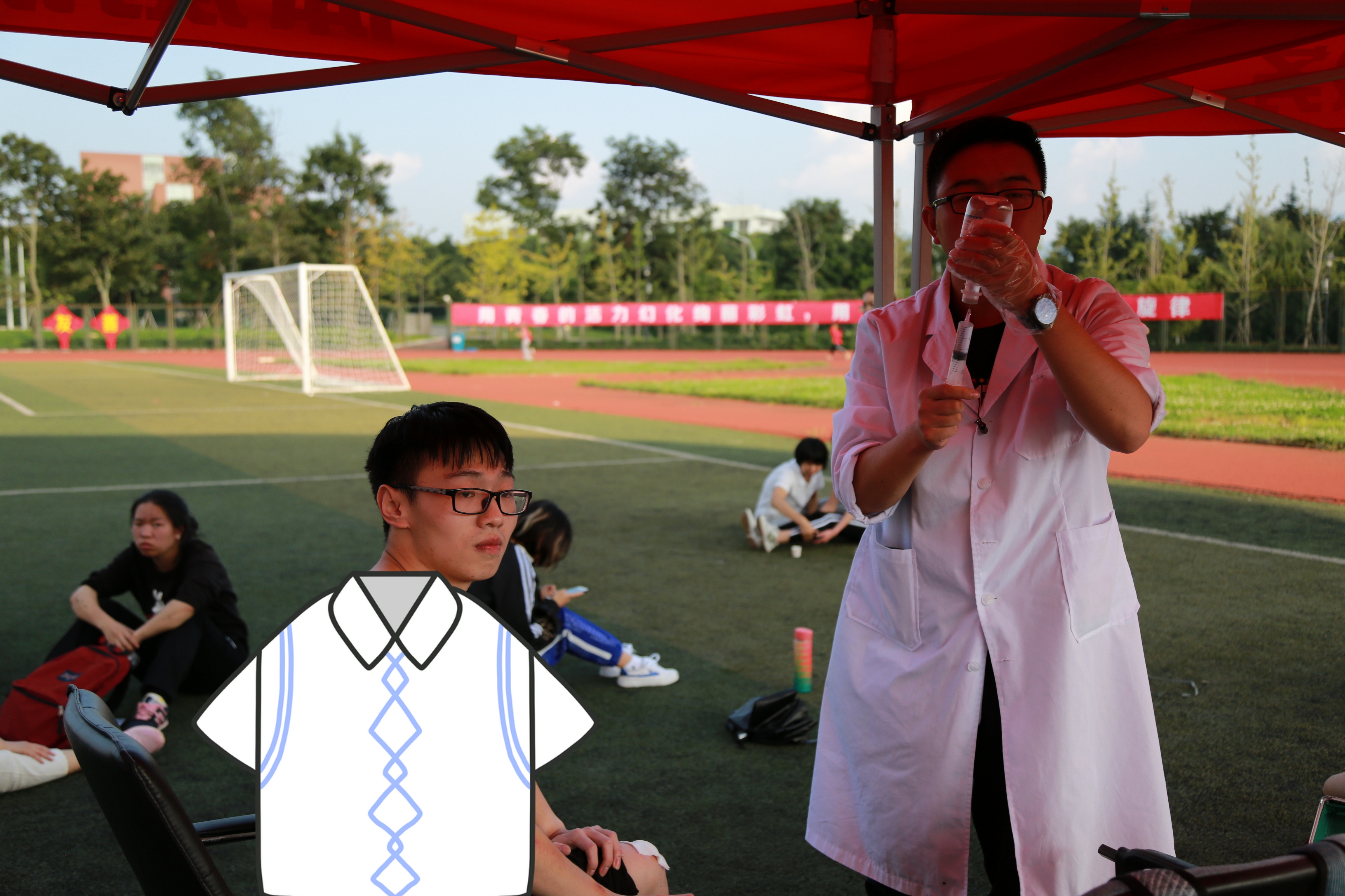 在各部门、志愿者的通力合作下,体育馆和田径场的准备工作布置就绪。
