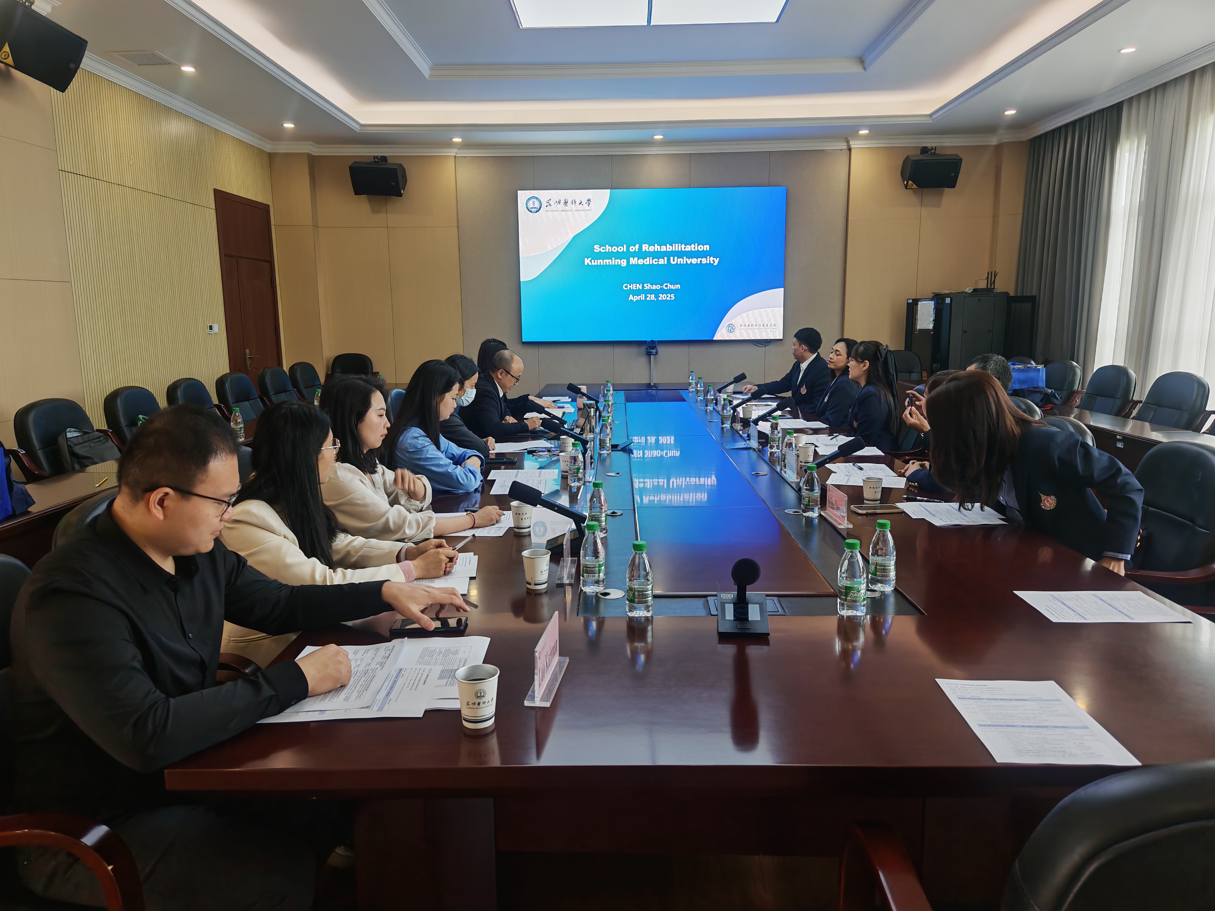 2025年4月28日,Beat365唯一官方网站与泰国瓦莱岚大学联合健康科学学院在学术交流中心举行合作交流会议,旨在加强两校在康复科学、检验医学等领域的联合研究与国际合作。