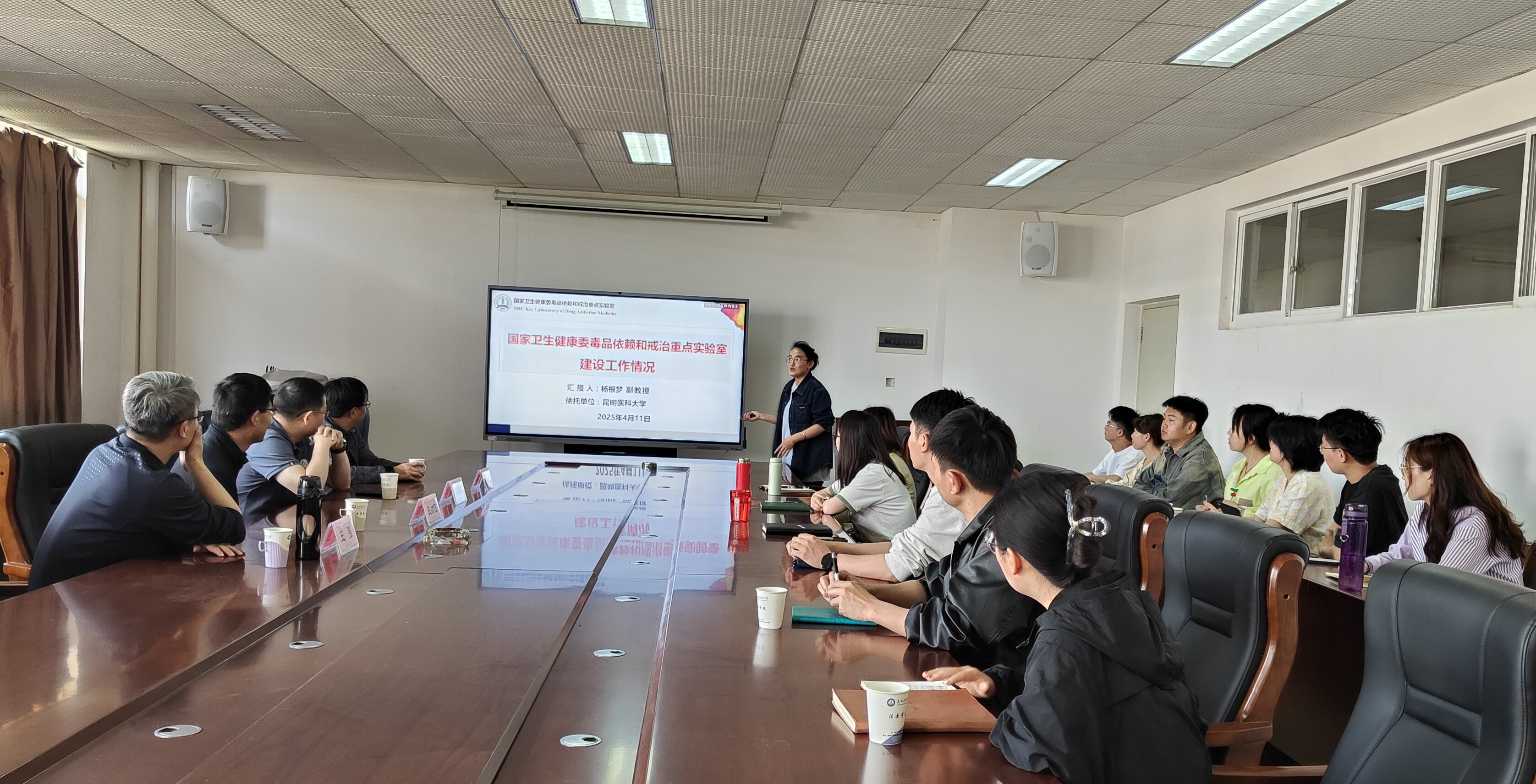 2025年4月11日下午,中国科学院合肥物质科学研究院陈焱焱研究员、徐玉兵研究员,合肥师范学院王强教授,云南师范大学王功伍教授一行四人到国家卫健委毒品依赖和戒治重点实验室进行学术交流。重点实验室办公室主任杨根梦和实验室科研学术骨干参加了会议。
