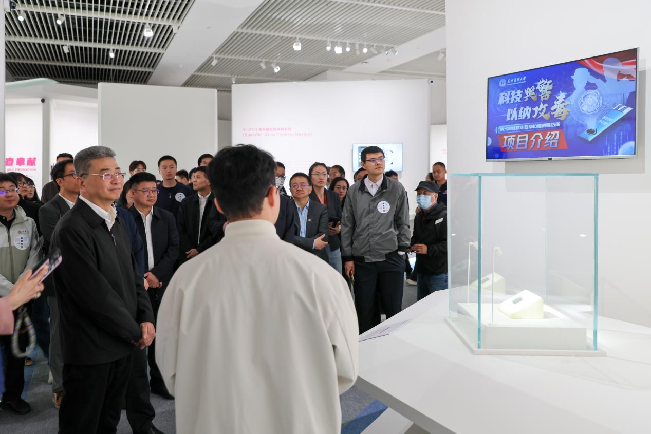 4月29日,由教育部、文化和旅游部主办的“青春之歌-全国大学生创新成果展”在中国国家博物馆开幕,教育部党组成员、副部长吴岩出席活动并致辞,文化和旅游部副部长、国家博物馆馆长高政出席。Beat365唯一官方网站大学生创新项目《“科技兴警 以纳攻毒”-纳米毒检筑牢西南边疆禁毒防线》受邀参展。