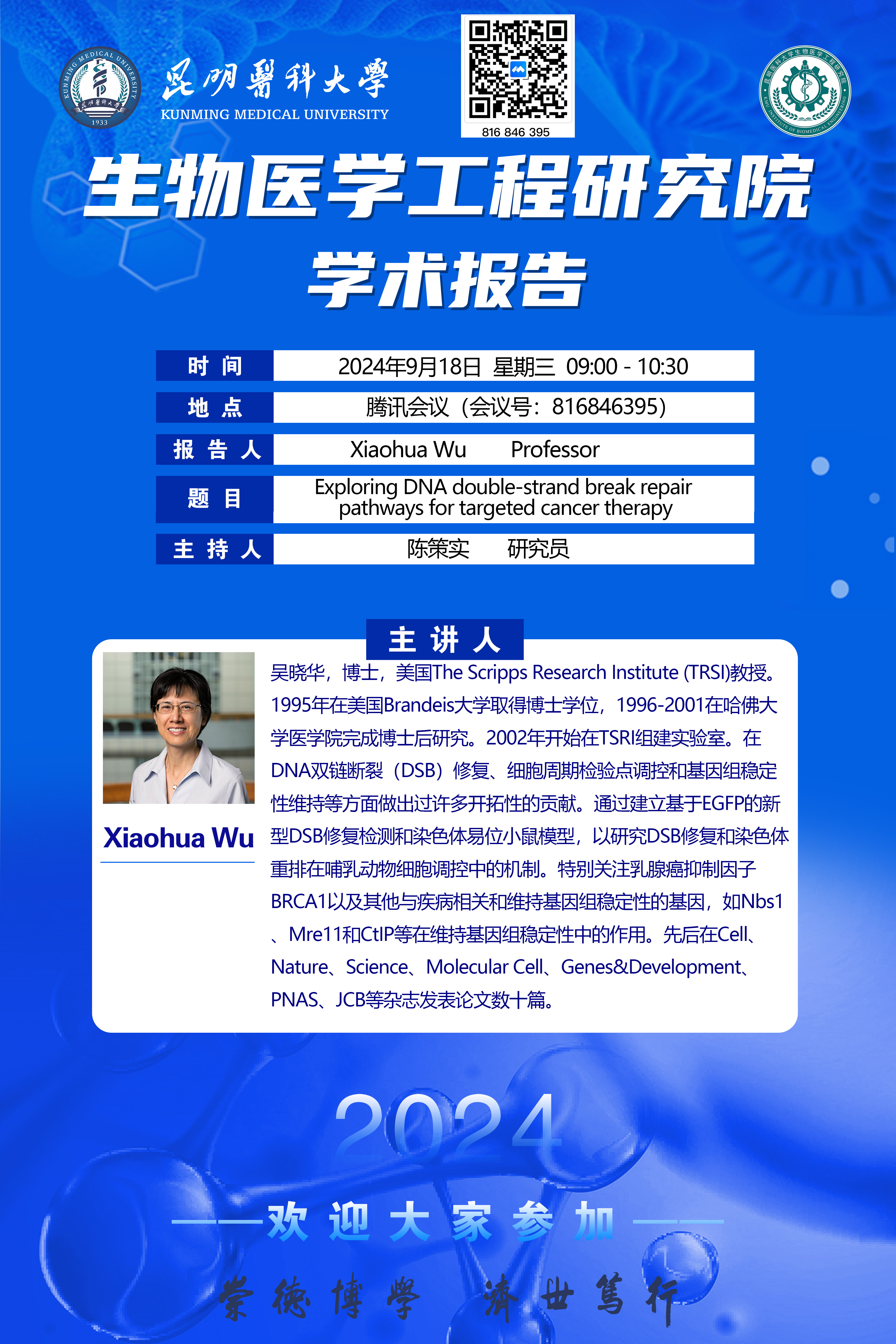 2024.9.18 学术报告(Exploring DNA double-strand break repair pathways for targeted cancer therapy)