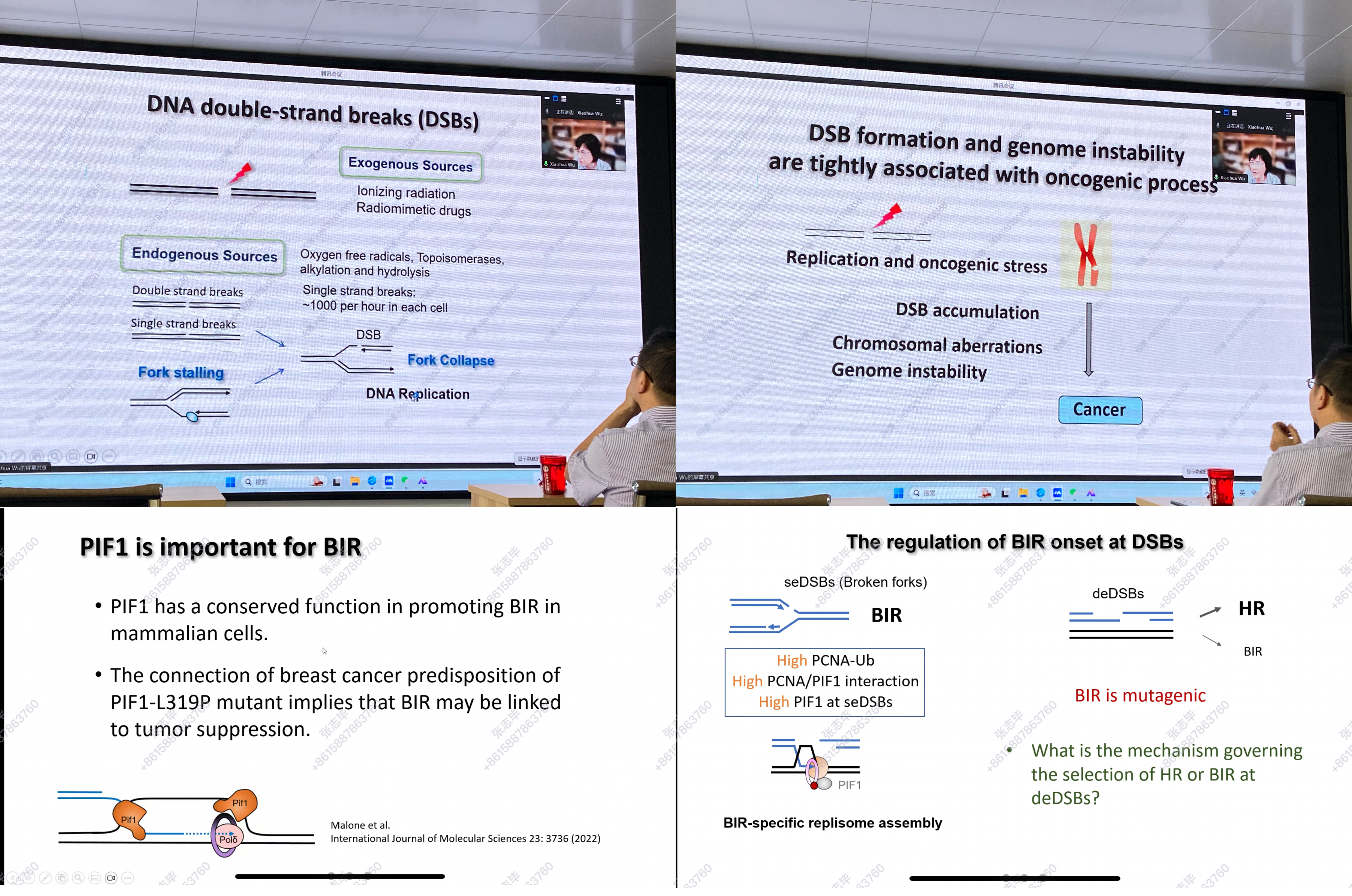 吴晓华教授以“Exploring DNA double-strand break repair pathways for targeted cancer therapy”为题,详细讲解了DNA双链断裂(DSB)、断裂诱导复制(BIR)以及DNA断裂/修复的分子调控等最新研究进展,重点介绍了课题组在PCNA、PIF1和53BP1对BIR调控的分子机制及其在肿瘤发生、发展和耐药中的作用。