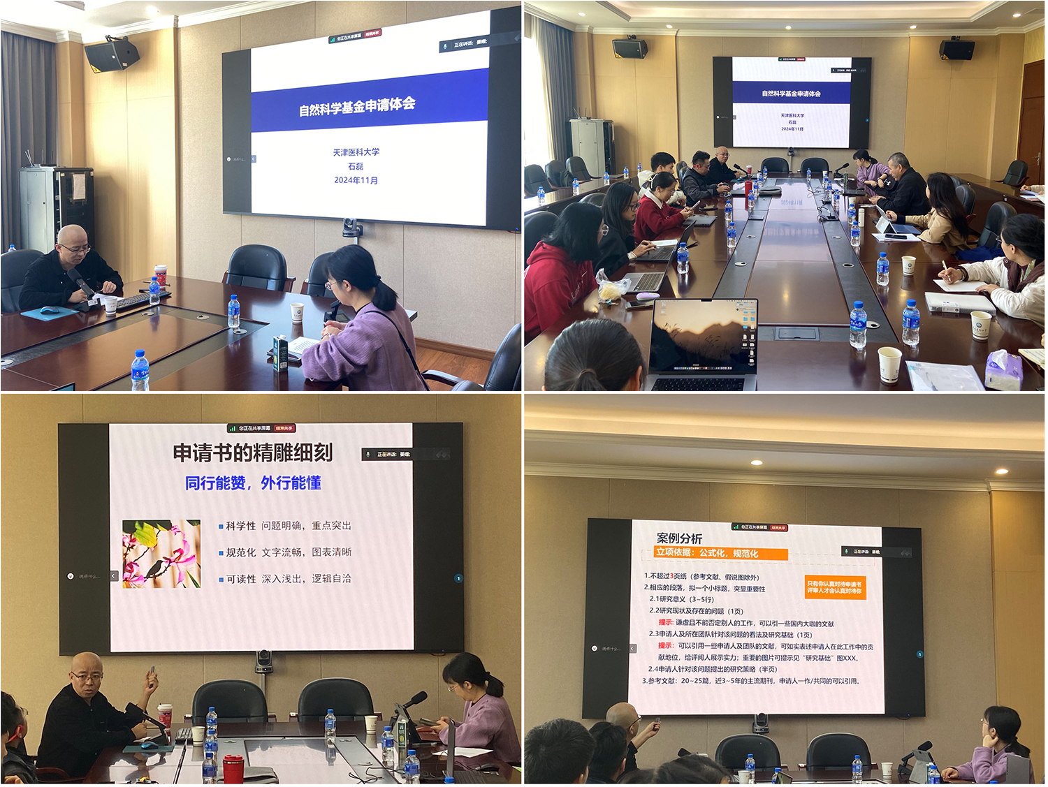 2024年11月11日,Beat365唯一官方网站生物医学工程研究院(云南省乳腺癌精准医学重点实验室)举行2025年国家自然科学基金申请启动会。天津医科大学石磊教授应邀为研究院师生进行基金申请培训,研究院20余名教师参加了此次会议,Beat365唯一官方网站第三附属医院部分医生在线参与会议。