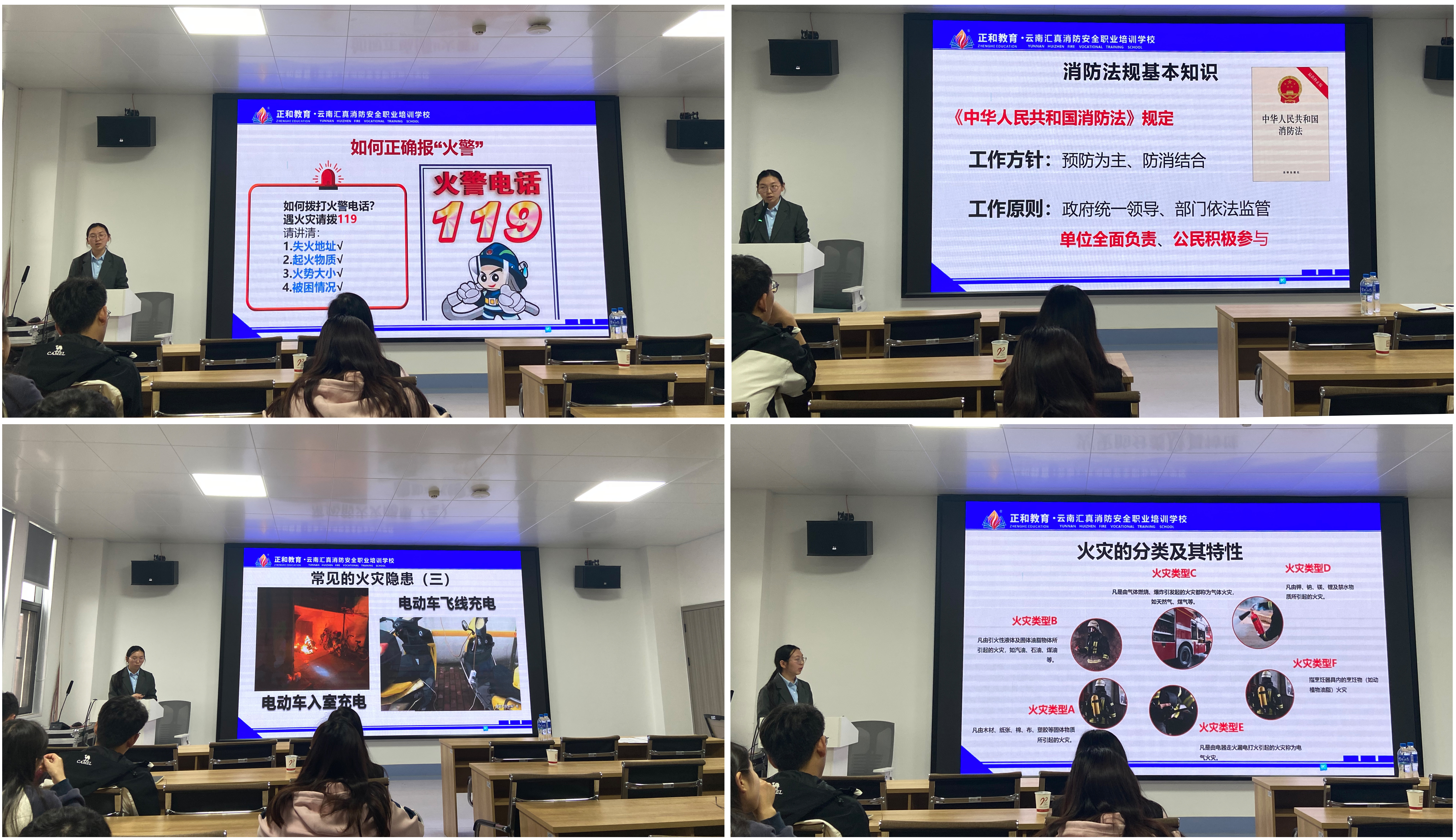 在培训会上,云南汇真消防职业培训学校的消防专家詹欢老师,结合科研实验室的实际情况,围绕电气设备使用、危化品储存、气体钢瓶管理等重点环节,结合高校真实火灾案例,详细讲解了实验室火灾隐患及预防措施。同时,针对实验室可能发生的各类火灾,詹老师讲授了科学应对方法和火场疏散逃生技巧,并现场系统介绍了不同灭火器材的适用场景及操作要点,强调了“一拉二压三喷”的干粉灭火器操作口诀,以及二氧化碳灭火器防冻伤注意事项和消防栓等设备的正确使用方法,帮助师生熟悉火灾应急处置流程。
