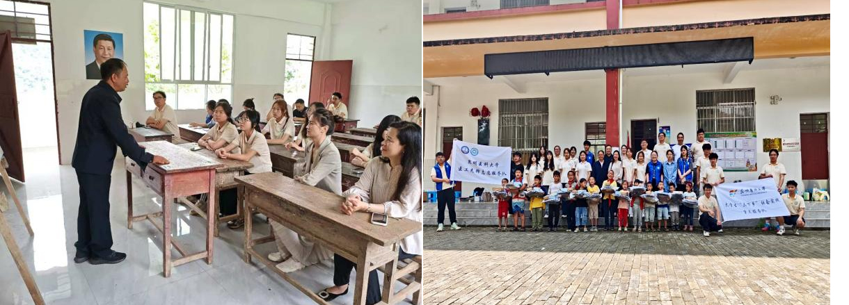 在落松地小学,团队怀着崇敬之心参观了“全国教书育人楷模”农加贵老师的事迹展。农老师三十余年坚守偏远山村教育一线,从未离开讲台。“哪怕只有一个孩子,我也要坚持上课。”这份执着与奉献深深打动了每一位队员。大家与孩子们交流学习心得,并赠送书包、文具等礼物,希望以此点亮他们更广阔的梦想。有同学在感言中写道:“农加贵老师‘一辈子做一件事’的精神,让我对‘乡村振兴’有了超越书本的理解。作为医工学子,我曾以为技术就是答案,直到真正走进基层才明白:振兴的密码,不仅在于专业与土地的融合,更在于像农老师这样扎根者的精神血脉。”