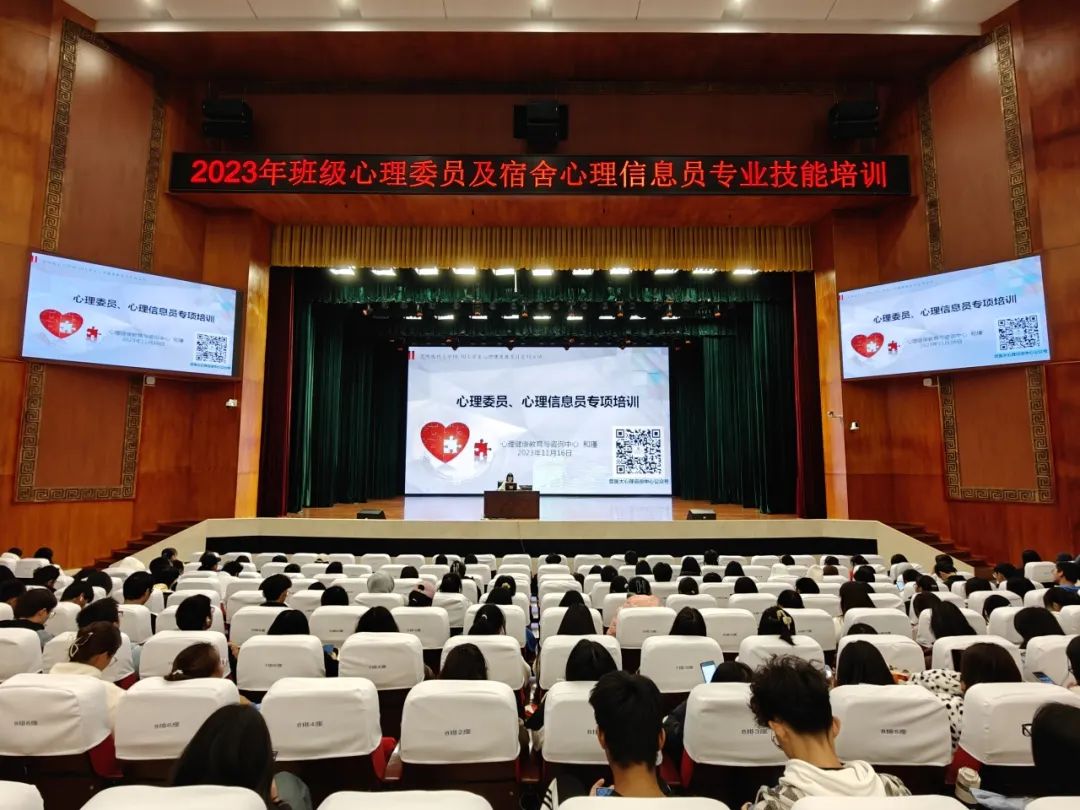 为充分发挥班级心理委员和宿舍心理信息员在学校心理健康教育工作中的重要作用,扎实推进我校心理健康教育四级网络建设,促进心理健康教育与咨询工作进一步展开,我校于11月16日晚17:30在学生会堂举行了班级心理委员和宿舍心理信息员专业技能培训。约1500名学生参加了本次培训。