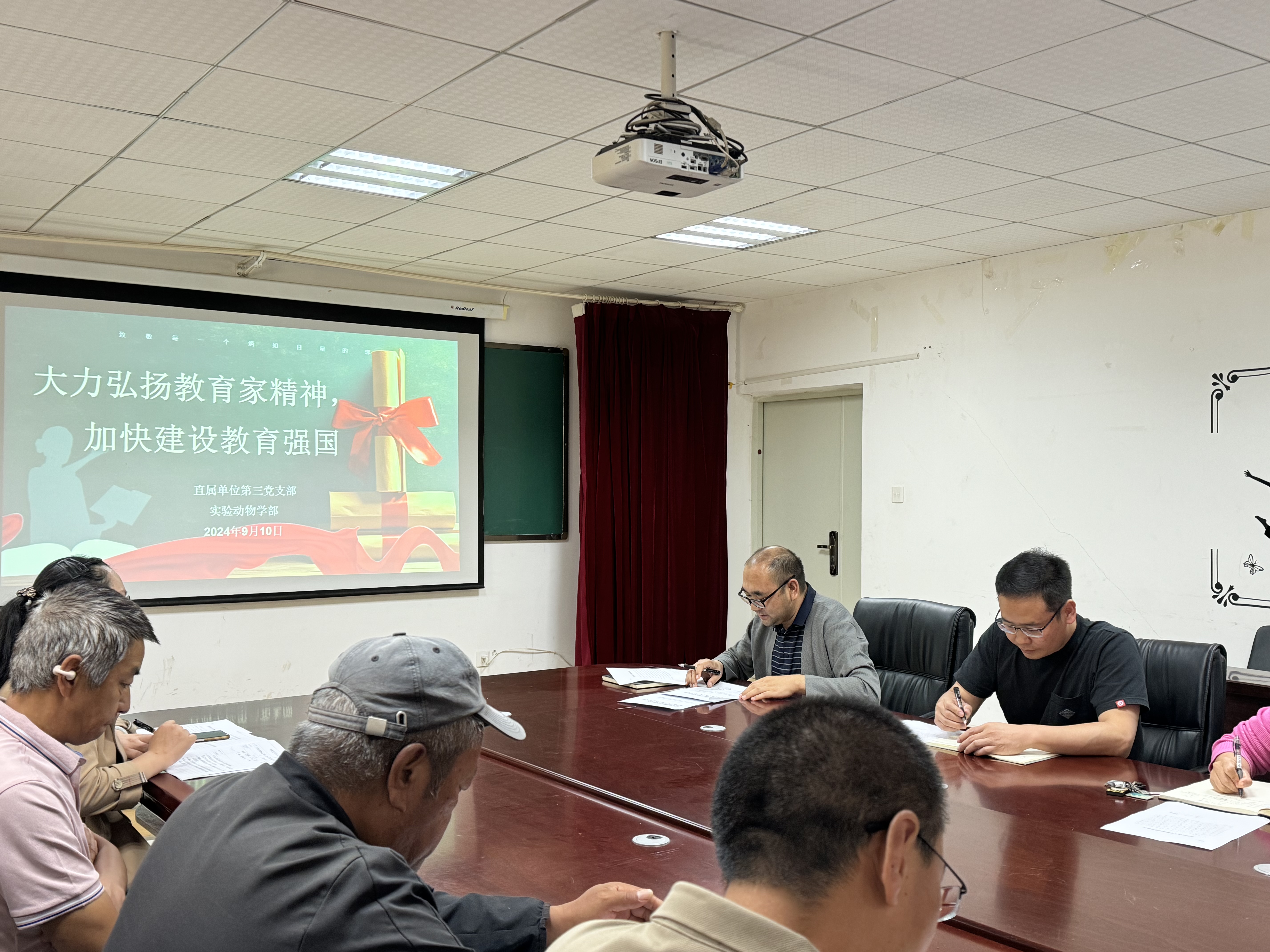 为热烈庆祝全国第40个教师节,深入贯彻习近平新时代中国特色社会主义思想,落实立德树人根本任务,全面贯彻党的教育方针,充分发挥先进典型的示范带动作用,积极营造尊师重教的浓厚氛围,实验动物学部于2024年9月10日在101会议室组织开展2024年教师节专题活动。