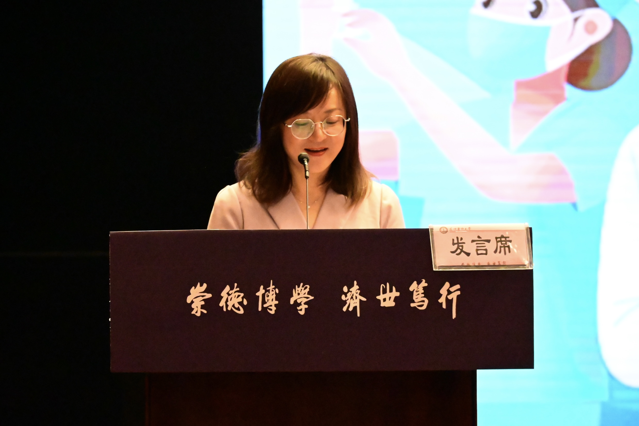 院长卢玉林致辞,强调大学教育不仅在于专业知识的精进,更关乎人格完善与素质提升。她勉励新生珍惜时光,积极投身实践和志愿服务,脚踏实地,仰望星空,践行守护人类健康的使命。