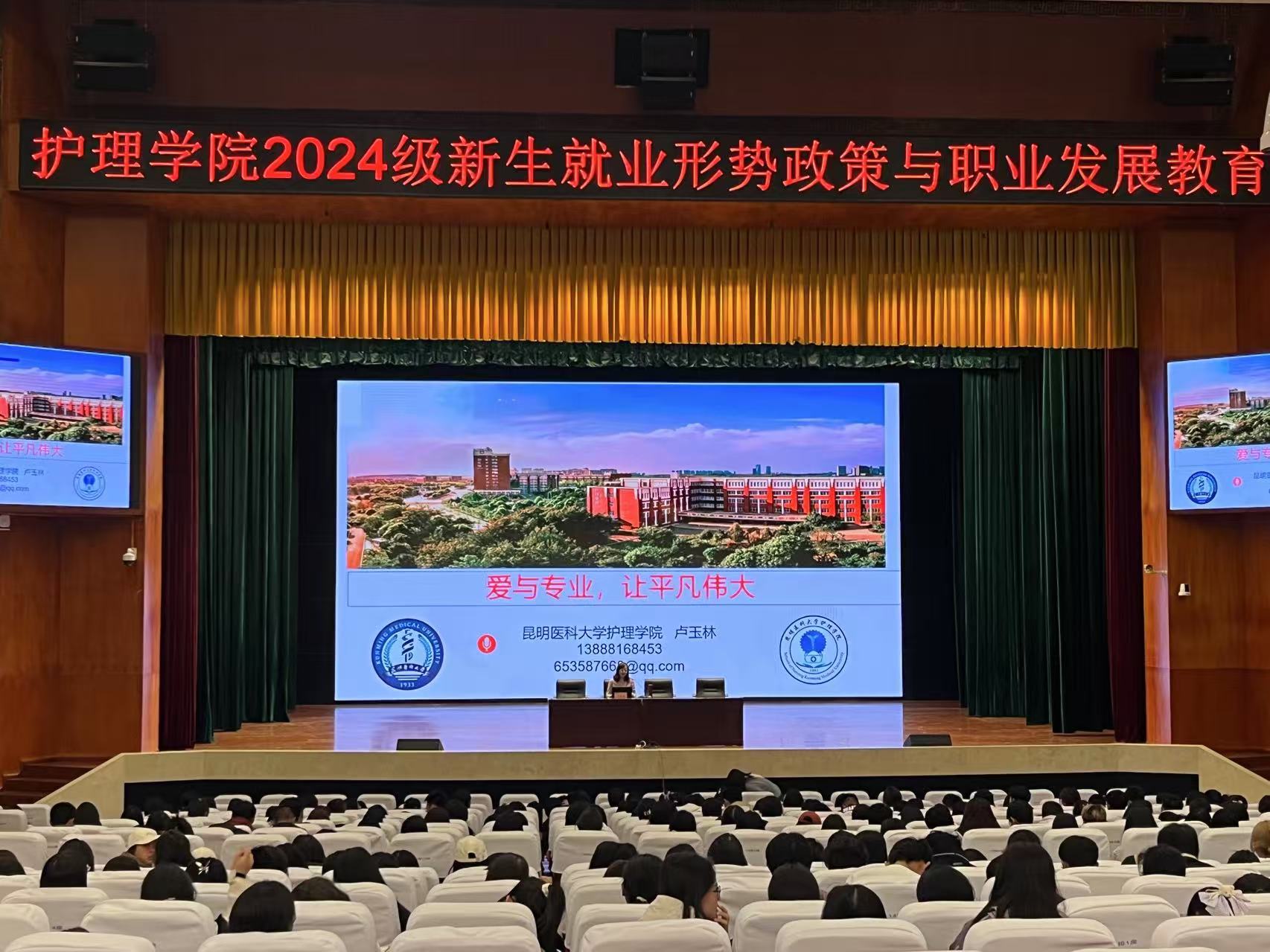 第二阶段,院长卢玉林以“爱与专业,让平凡伟大”为主题,开展专业思想教育,细致讲解院史院情、人才培养方案和专业特色。卢玉林强调护理学科价值,鼓励新生树立目标,培养特长,秉承爱与专业精神成就非凡事业。