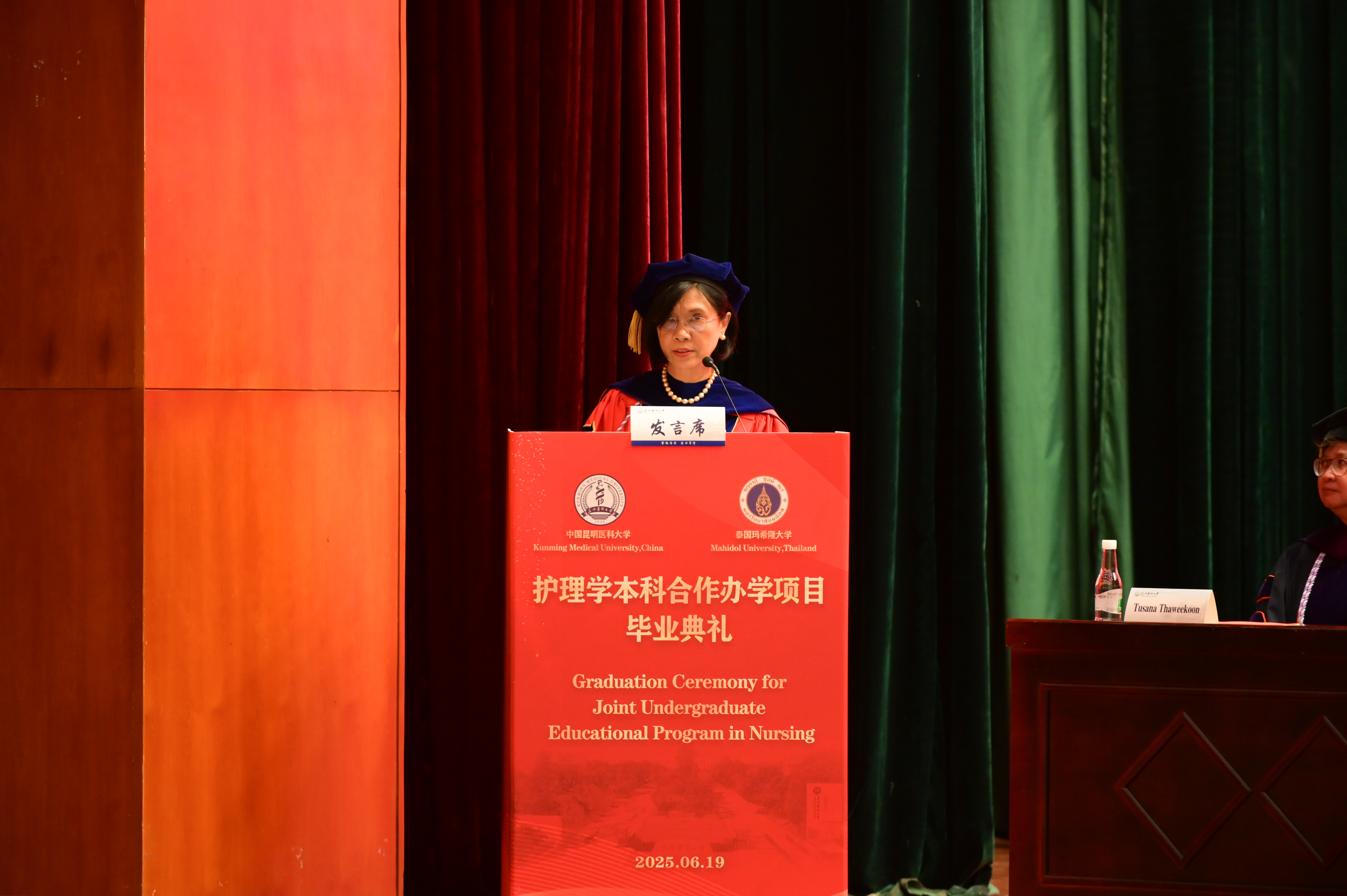 泰国玛希隆大学拉玛提博迪护理学院院长Poolsuk Janepanish Visudtibhan称赞毕业生们克服语言与文化的挑战,成为两校友谊的桥梁和合作办学项目的开拓者,并期待他们在未来的职业道路上为全球医疗事业继续奋斗。