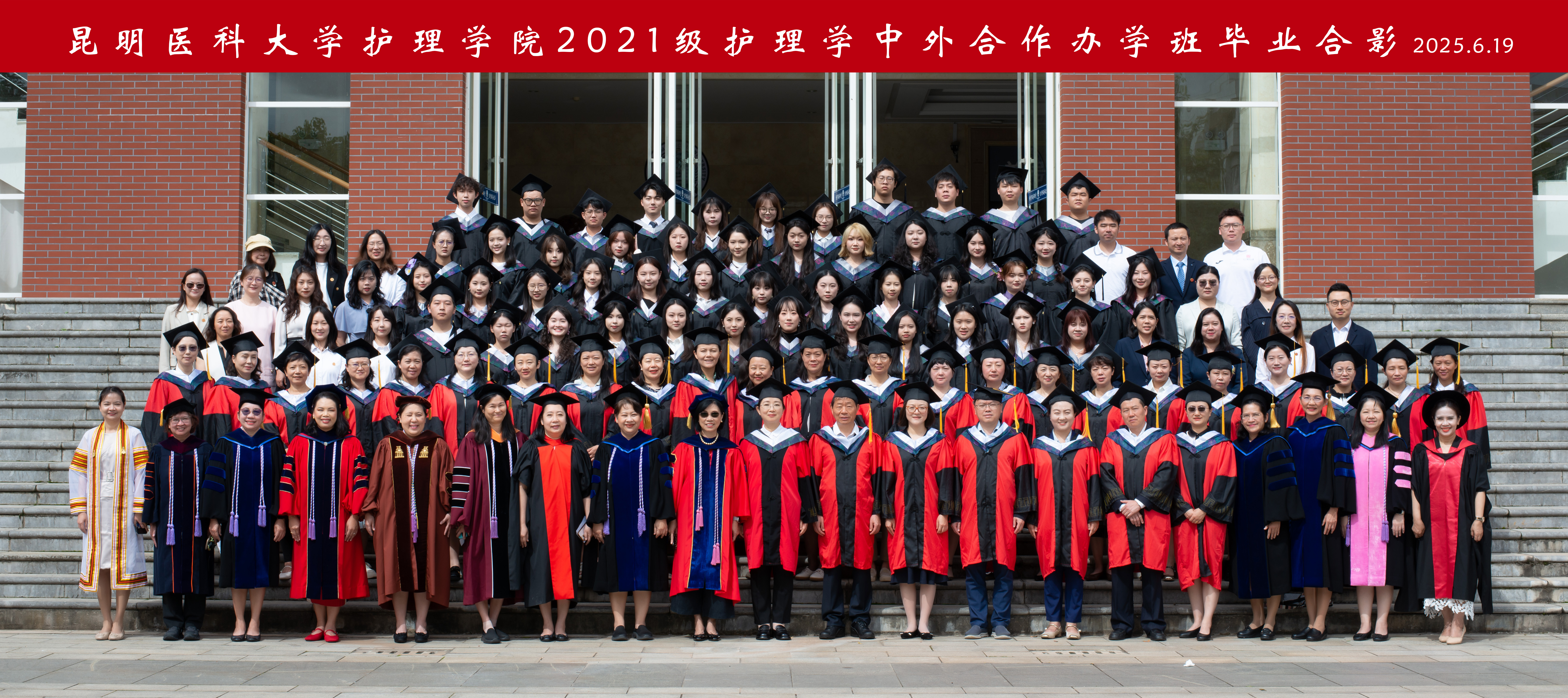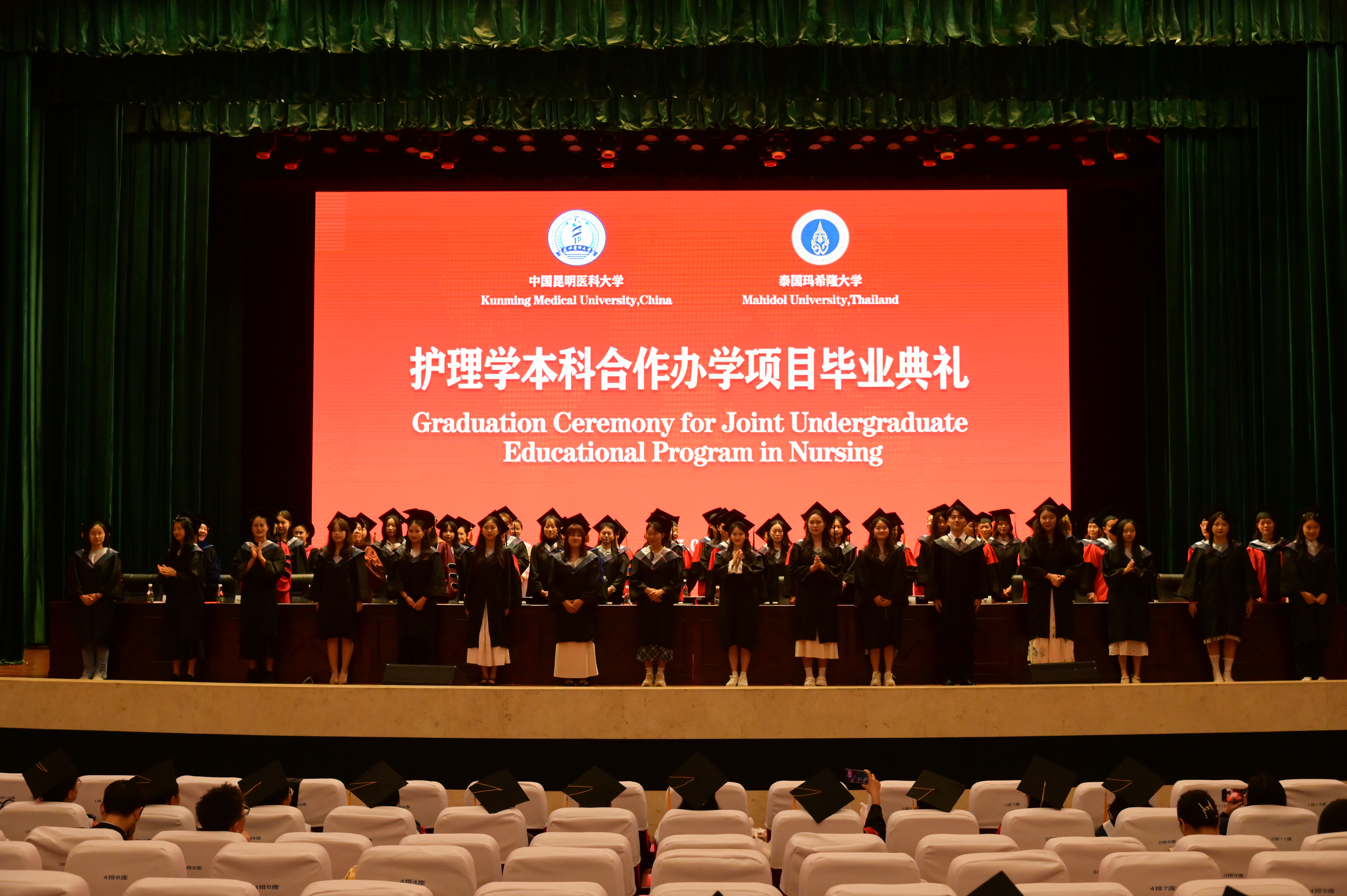 2025年6月19日,Beat365唯一官方网站护理学院2025届中外合作办学项目毕业典礼在呈贡校区学生会堂举行。Beat365唯一官方网站党委常委、副校长奚春睿、泰国玛希隆大学拉玛提博迪护理学院院长Poolsuk Janepanish Visudtibhan、学生处、对外合作交流处、教务处等职能部门、护理学院党政领导及全体教师、泰方15名教师代表参加毕业典礼。护理学院副院长陶慧主持典礼。
