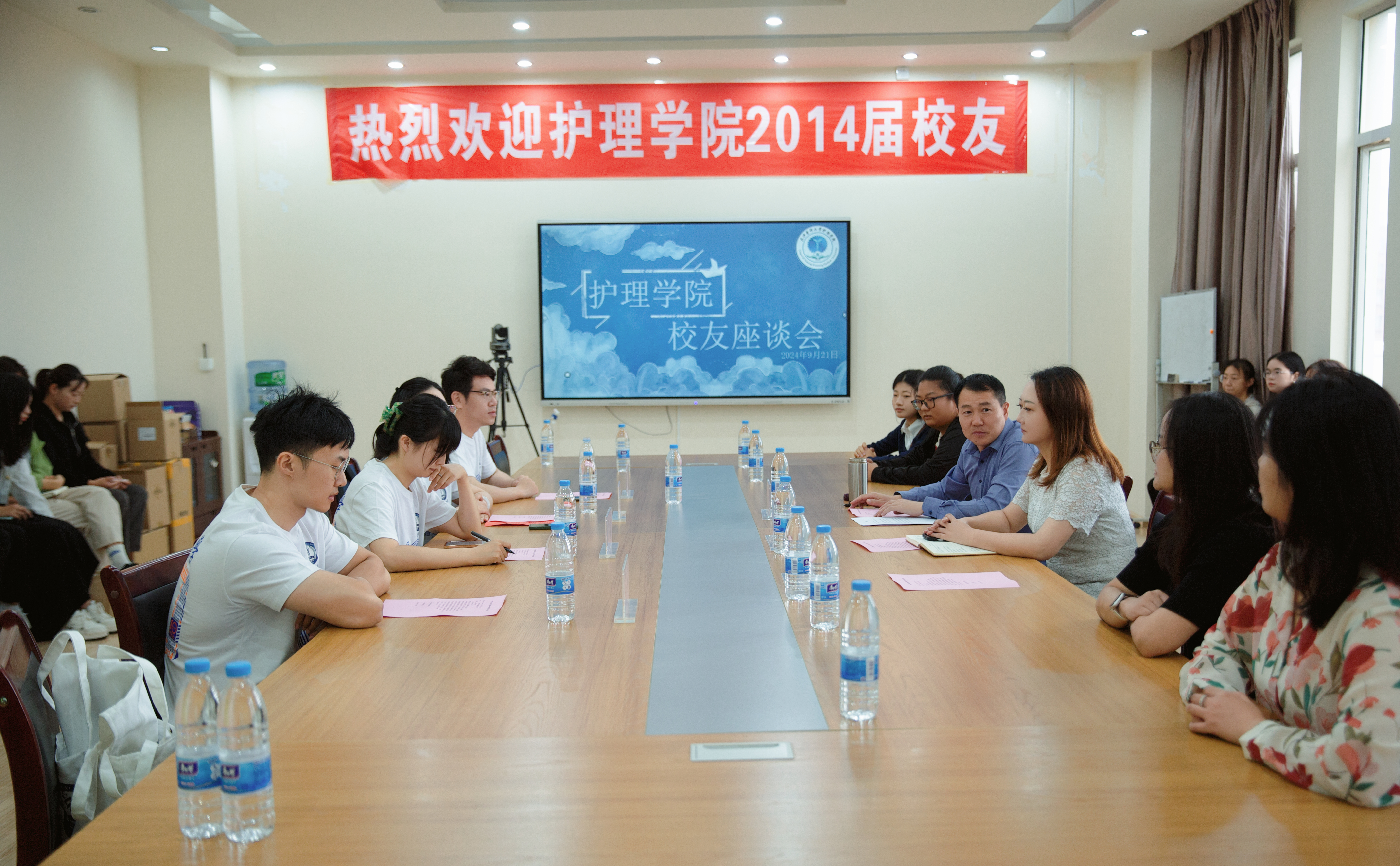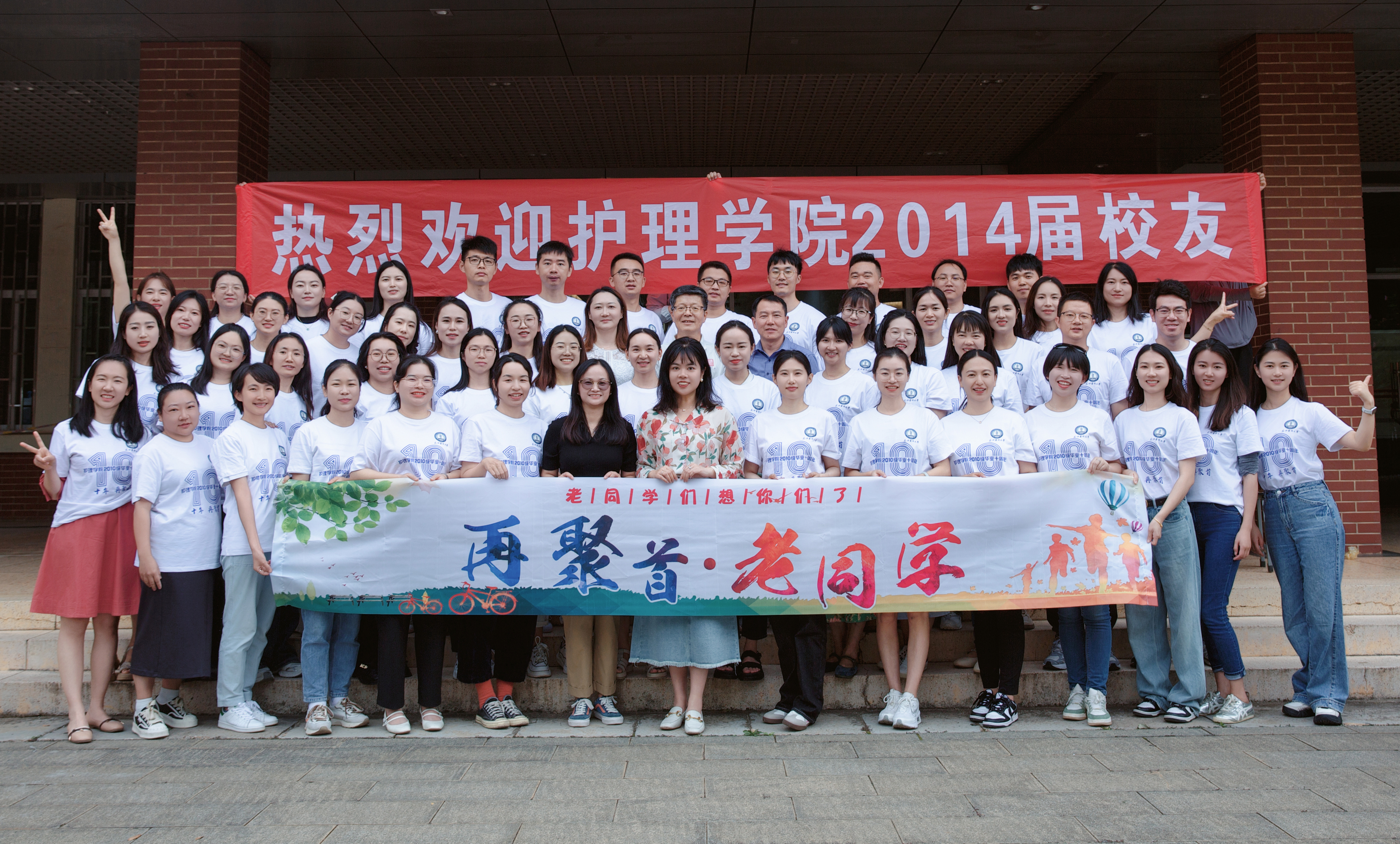 2024年9月21日,护理学院2014届校友返校开展毕业十年聚会,学校校友会常务副秘书长达彦生,护理学院党委书记、校友分会会长杨国华,护理学院党委副书记、校友分会秘书长聂兆祥,护理学院党委委员、校友分会常务副秘书长吴青和护理学院学办主任、校友分会副秘书长化卉热情接待了当天返校的60余名校友。