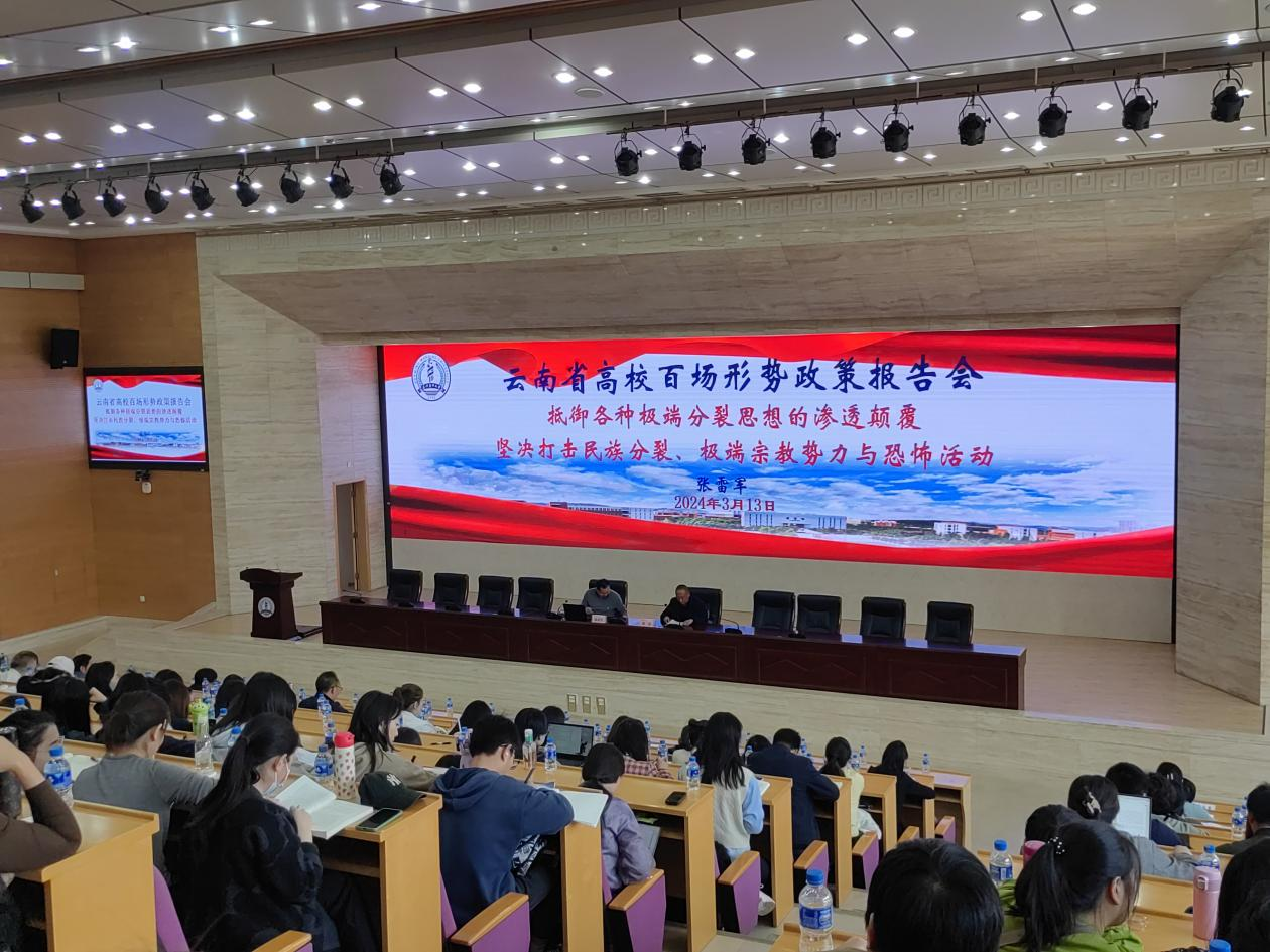 3月13日,第三党支部组织全体党员在呈贡校区学术交流中心第一报告厅开展民族与宗教工作理论和实践专题党课学习。中共云南省委党校(云南行政学院)教授张雷军博士应邀作题为《抵御各种极端分裂思想的渗透颠覆——坚决打击民族分裂、宗教极端势力与恐怖活动》的专题授课。校党委常委、党委统战部部长、第三党支部书记和清主持。