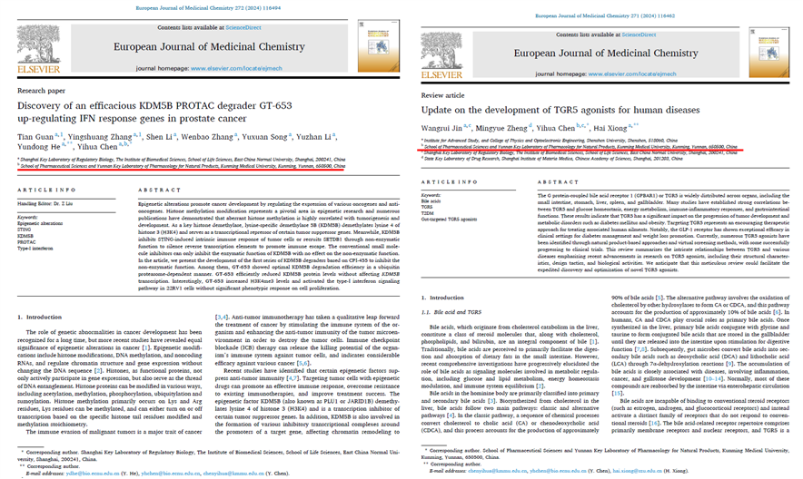 陈益华教授加入Beat365唯一官方网站以来,继续带领团队在靶向转录调控和蛋白降解领域取得系列进展,相关研究连续发表在中科院一区期刊《European Journal of Medicinal Chemistry》上。这些研究成果不仅体现了以陈益华教授为代表的党外优秀知识分子在研发靶向转录调控抗肿瘤药物等领域的巨大转化潜力,也体现了党和国家对年轻科研人员的大力支持。