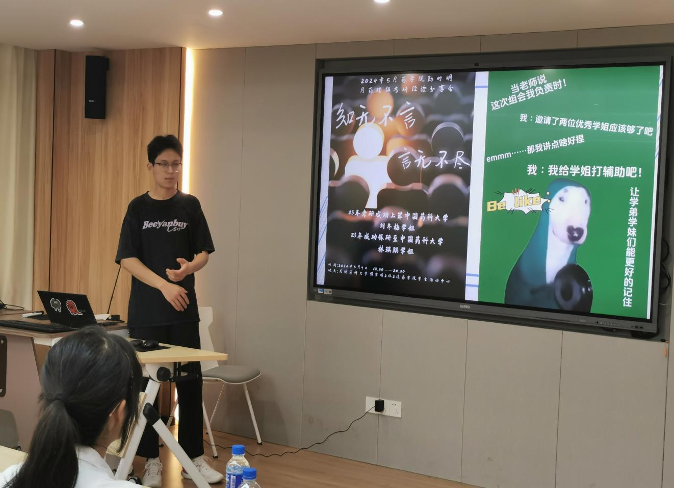 2024年5月9日,药学院勤时明月药理组在博学园2栋2楼药学院学生“一站式”社区举办了一场以“知无不言,言无不尽”为主题的考研经验分享会。此次分享会由2021级药学专业的学生曾祥主持。