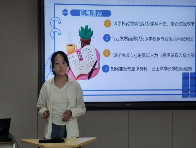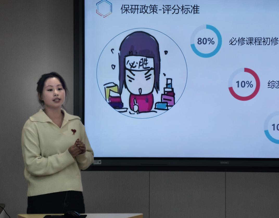 分享会上,首先由主持人曾祥同学介绍本次活动的主题。之后,2020级药学专业林琪琪同学从保研政策、综测提升、加分项说明及后续工作四个方面分享了她成功保送中国药科大学的经验;2020级药学专业刘冬梅同学则分享了她考上中国药科大学研究生的心得,重点讲述了考研前的复习准备和时间安排,强调了复习要有计划性与针对性,并推荐了辅导课本和网络资源。最后曾祥同学进行总结:提前准备、目标清晰、计划周详及良好心态是两位考研学姐的的经验之谈。希望在座的学弟学妹们能够坚定信心,勇敢面对挑战,坚持到底,敢于追求自己的目标,将梦想化为现实。