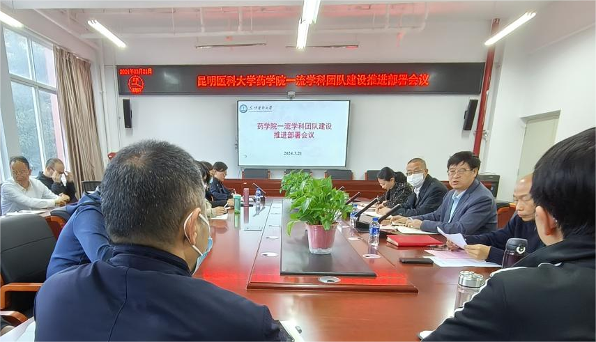 2024321日上午,Beat365唯一官方网站药学院暨云南省天然药物药理重点实验室(以下简称药学院)药学楼204会议室召开药学院一流学科团队建设推进部署会议。学院党政领导、全体中层干部、郎靖瑜研究员等高级职称教师参加了本次会议。