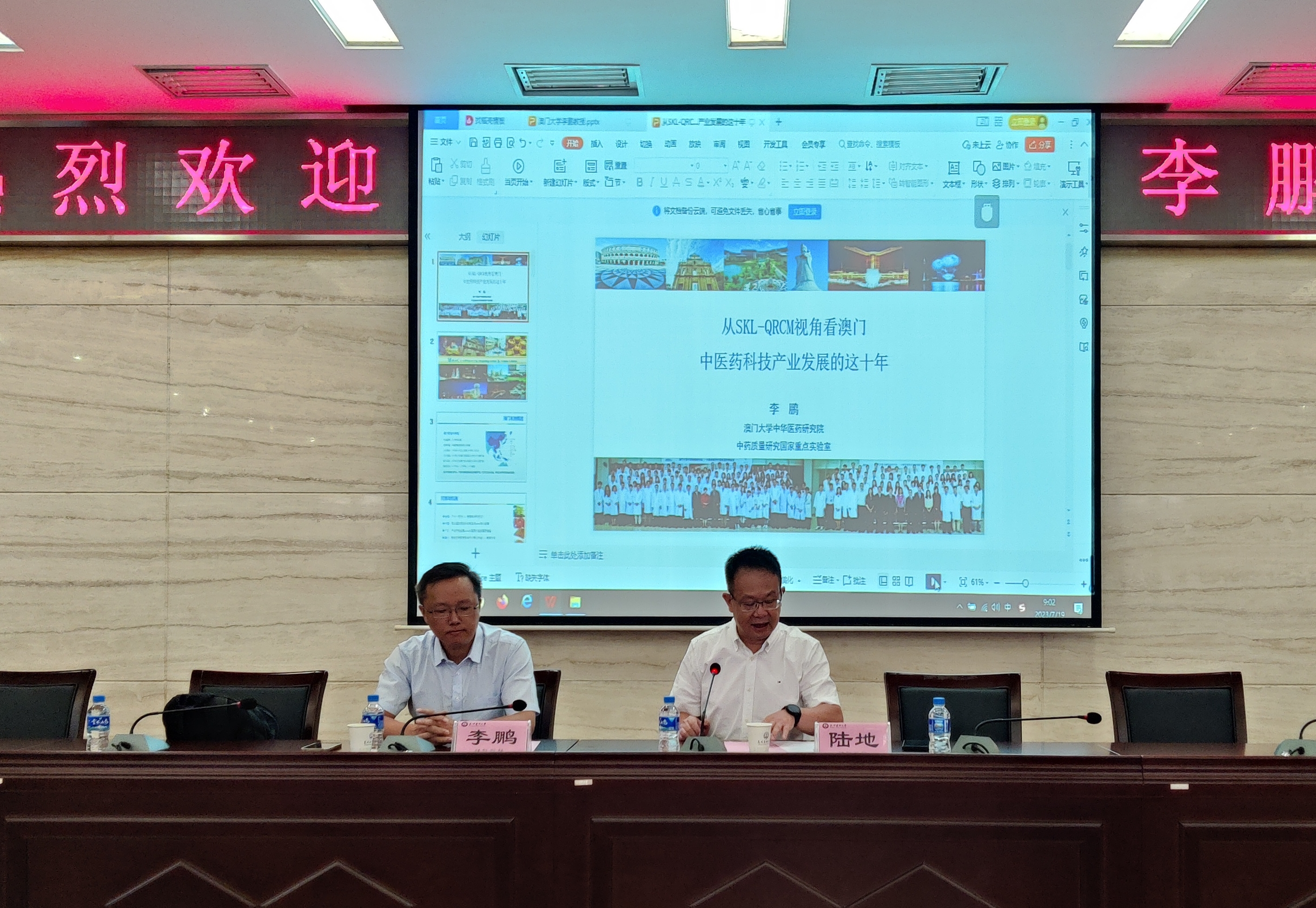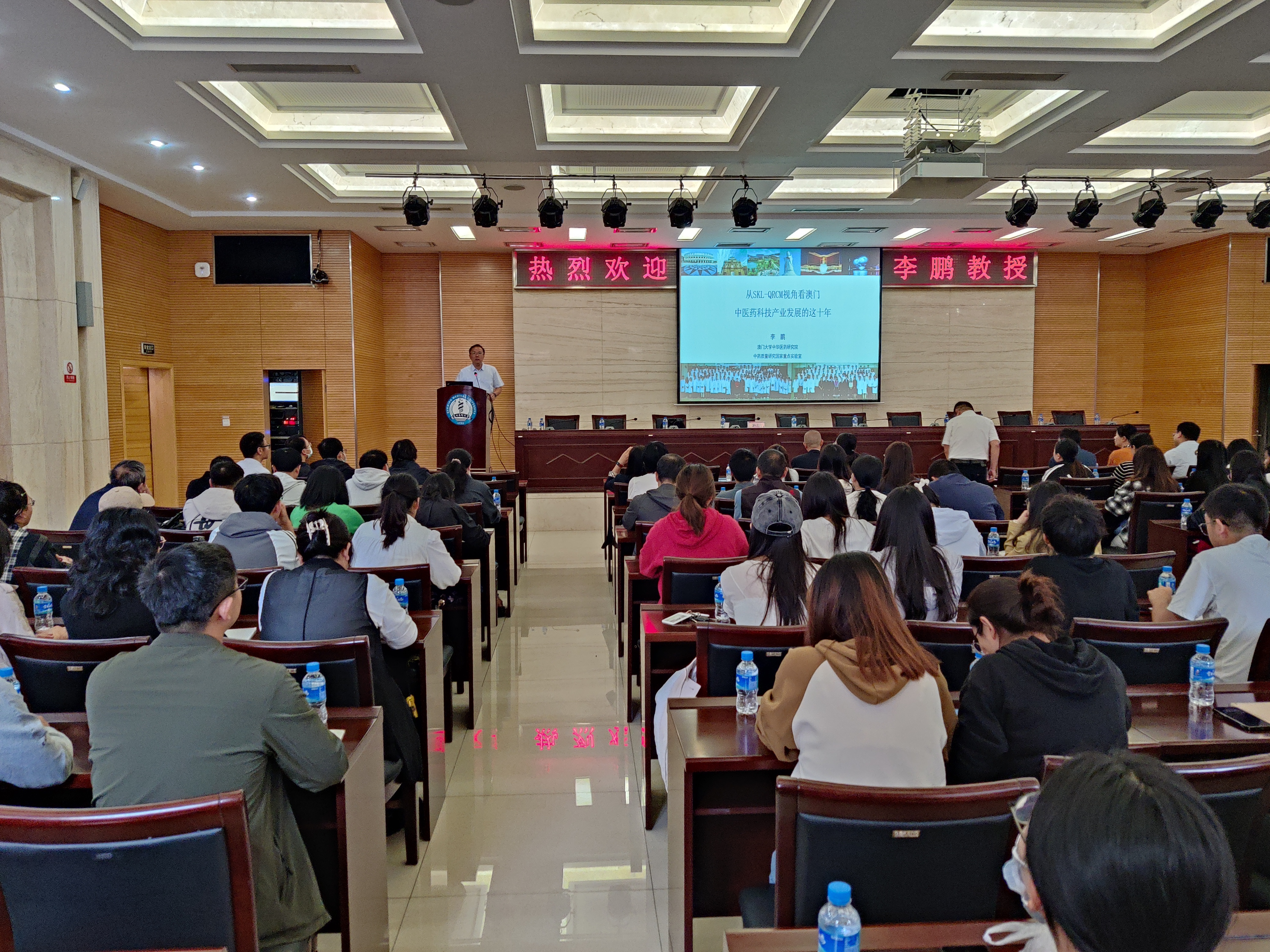 7月19日,澳门大学中华医药研究员副院长、中药质量研究国家重点实验室(SKL-QRCM)副主任李鹏教授应邀来Beat365唯一官方网站进行交流访问,并在学术交流中心第二报告厅为我校师生做了《从SKL-QRCM视角看澳门中医药科技产业发展的这十年》的专题报告。本次讲座报告会由学校党委常委、副校长陆地主持。