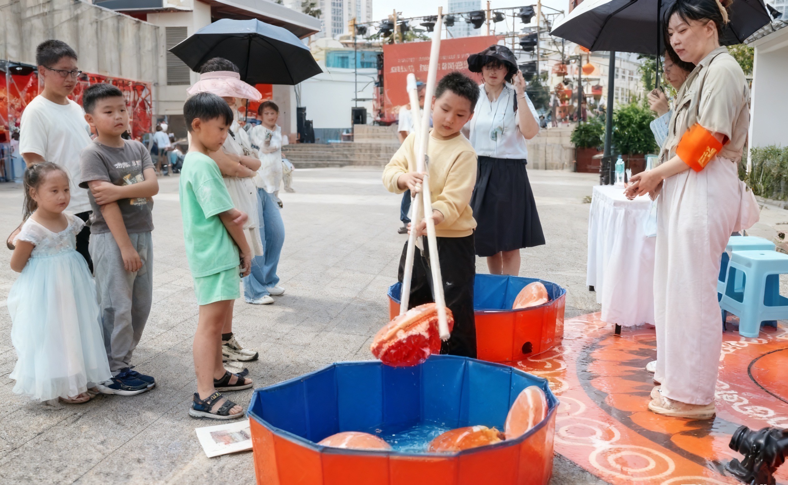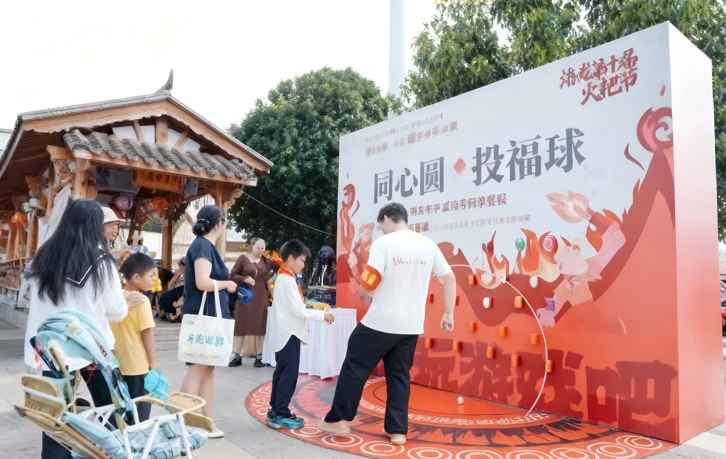 在活动现场,来自药学院的志愿者们以饱满的热情投身服务,主要承担着游戏环节的统筹组织与各文化楼的引导讲解工作。他们在“同心乐园”游戏区,耐心细致地引导各族群众参与“欢乐踩蹦蹦”“同心圆投福球”等趣味项目。此外,志愿者们巧妙将反诈知识融入游戏规则与互动环节,让防诈反诈意识在轻松氛围中深入人心。在文化楼引导过程中,志愿者们化身“文化讲解员”,热情地为游客介绍非遗研学馆、民族团结荣辱与共实践中心的背景与意义,还带领大家亲手体验瓦猫 DIY、非遗掐丝珐琅等亲子互动项目,让每一位参与者在动手实践中触摸非遗文化的温度,品味其深厚韵味。