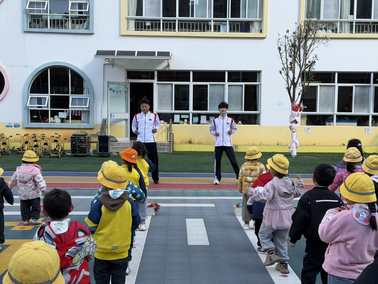 上午,活动以“专业示范”与“安全筑基”双线展开。在幼儿互动环节,运动机能优化中心团队为全园儿童呈现了一套根据学龄前儿童身心发展特点量身创编的武术启蒙操。