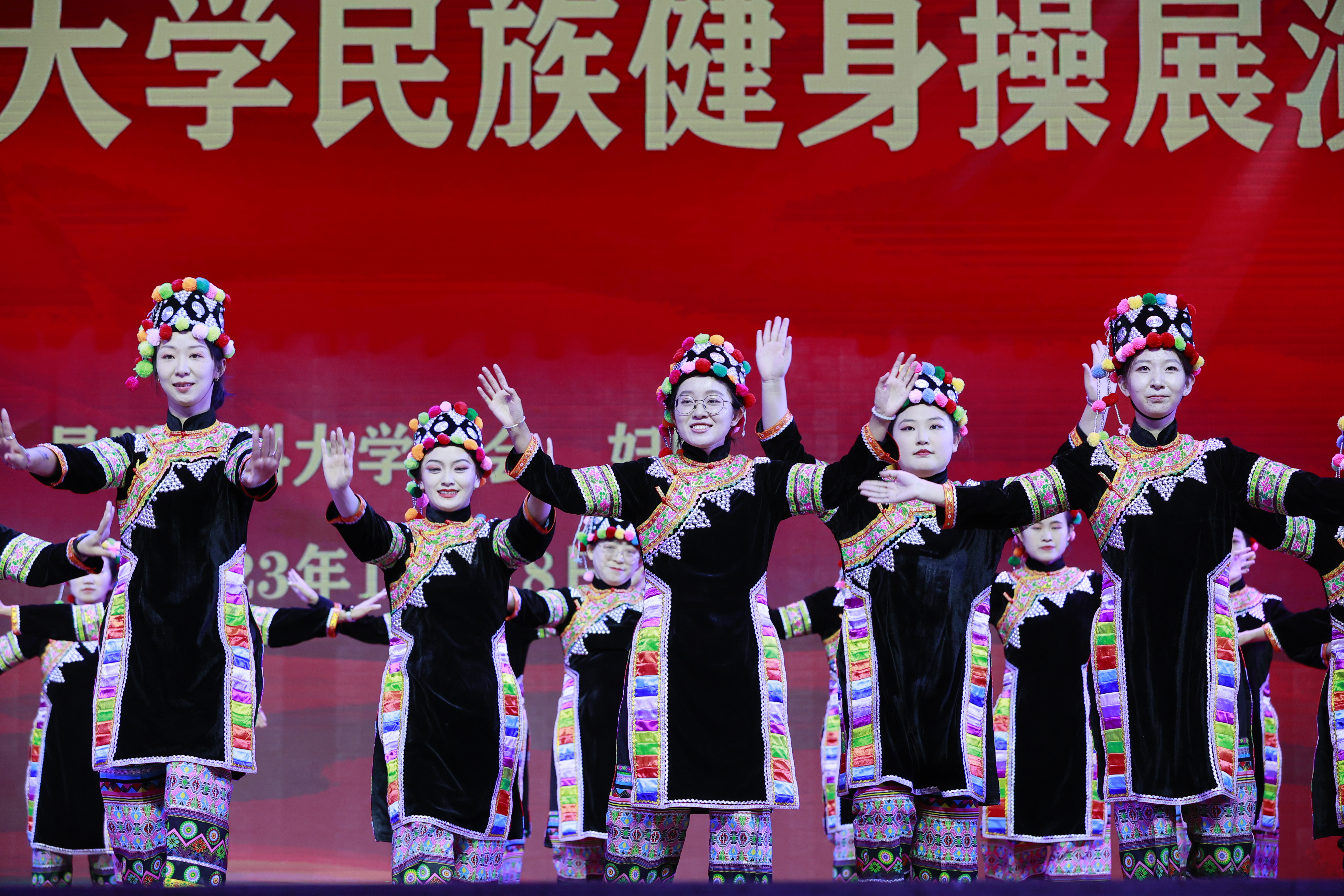 直属单位工会、妇联分会组建了一支由教师、研究生共计30人的健身操队伍,学习并展示拉祜族健身操。师生们放弃了休息时间,经过为期半月的认真排练,呈现出《快乐拉祜》的民族性、体育性和观赏性,展现了直属单位师生团结一心、积极进取的精神风貌。