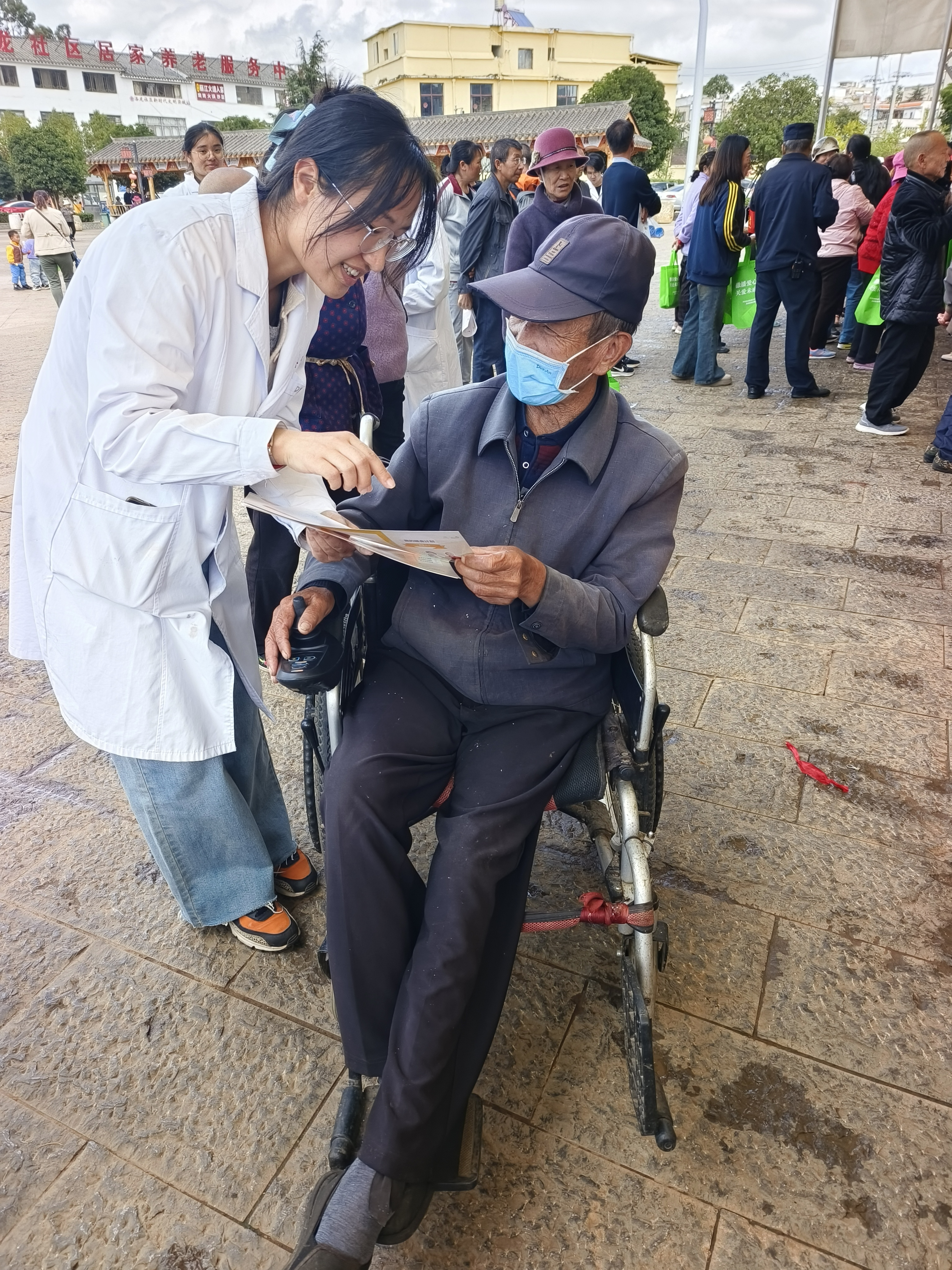 一支服务队由校医院医生14人和康复学院学生6人组成,为社区老年居民提供了慢病管理、用药咨询、康复治疗、眼科普查、血压、血糖及血氧饱和度检测等服务。通过对社区老年居民进行一对一的专业指导,向居民普及常见疾病的预防与治疗方法,帮助社区居民了解和预防疾病,提高健康意识及水平。康复专科医生、治疗师针对老年人群特点进行了心脏康复、听力康复、神经肌骨康复、疼痛等方面详细的讲解和专业指导,并现场为社区居民进行简单实用的康复训练。