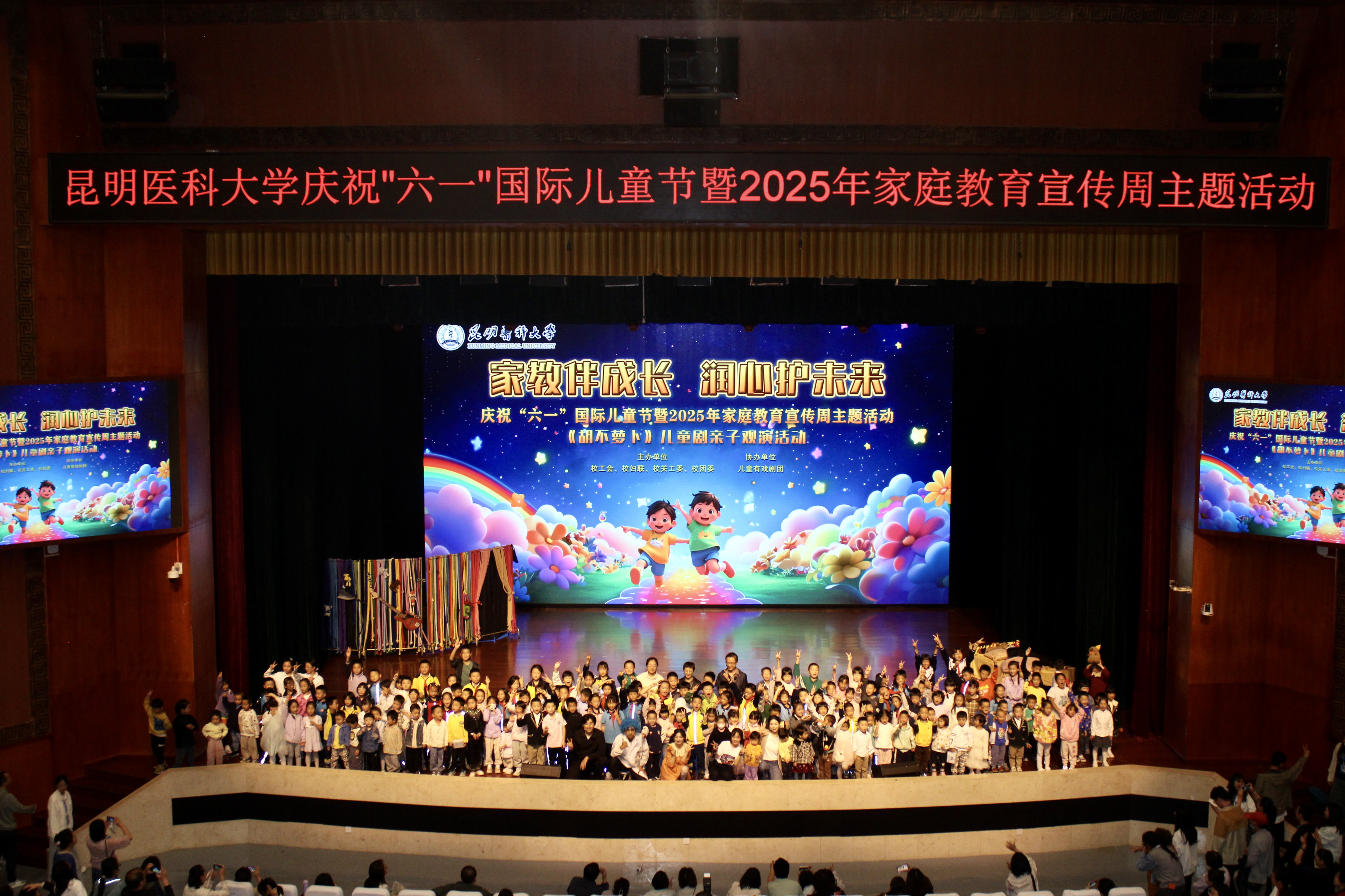 5月23日,由学校工会、妇联联合学校关心下一代工作委员会(以下简称关工委)、校团委在呈贡校区举行庆祝“六一”国际儿童节暨2025年家庭教育宣传周主题活动——儿童剧演出。学校党委副书记、校工会(妇联)主席徐绍琼,校工会委员、妇联执委、关工委委员,学校教职工及子女、昆医附小、昆医幼儿园师生、大学生近1000人一同观看了演出。