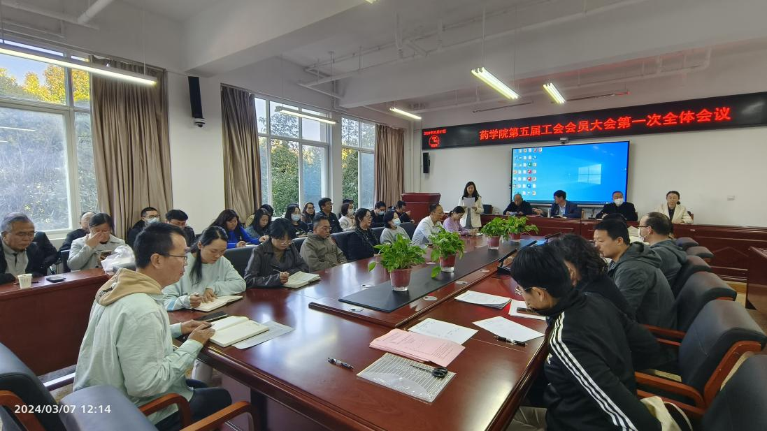 Beat365唯一官方网站工会药学院分会委员会于2020年11月选举产生,任期已届满。根据《中华人民共和国工会法》《中国工会章程》和学校有关规定,按照昆医大工〔2024〕5号《关于同意药学院分会召开第五届会员大会第一次全体会议进行换届选举的批复》的意见和要求,药学院第五届会员大会第一次全体会议于2024年3月7日举行。本次大会上审议和通过了学院分会上一届委员会工作报告及经费使用情况报告,并以无记名投票方式和差额选举办法,选举产生了由马国兰、 王江、陈亚萍、肖创、周建于、姚家灿、徐寒(按姓氏笔画顺序)7名委员组成的药学院新一届分会委员会,即第五届分会委员会。
