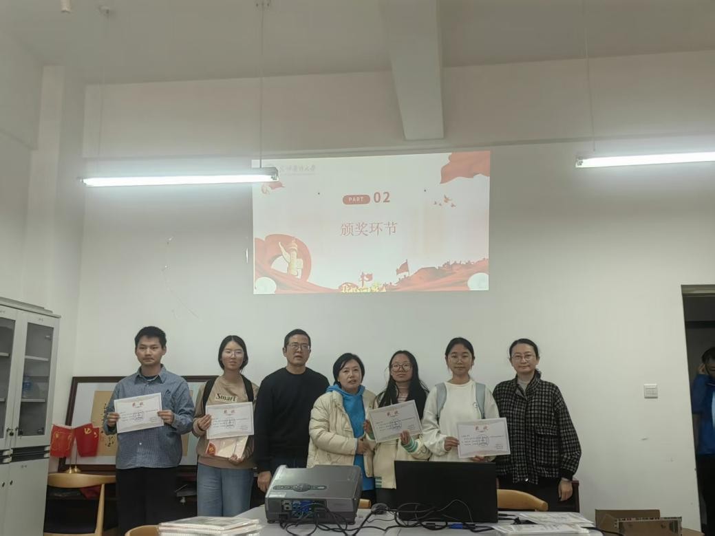 在颁奖仪式上,陆露充分肯定了本次活动的育人成效,认为教师第二党支部以党建为引领,推动教学内容与形式创新,是落实立德树人根本任务、实施“五育并举”的生动实践。同时,党建工作与教育教学深度融合,不仅丰富了课程思政载体,也为《基础化学》课程改革探索了新路径。随后,教师第二党支部书记柳波宣读了获奖名单,支部党员教师一起为获奖学生颁发荣誉证书及奖品,勉励大家保持求知热情,在实践中锤炼本领、增长才干。