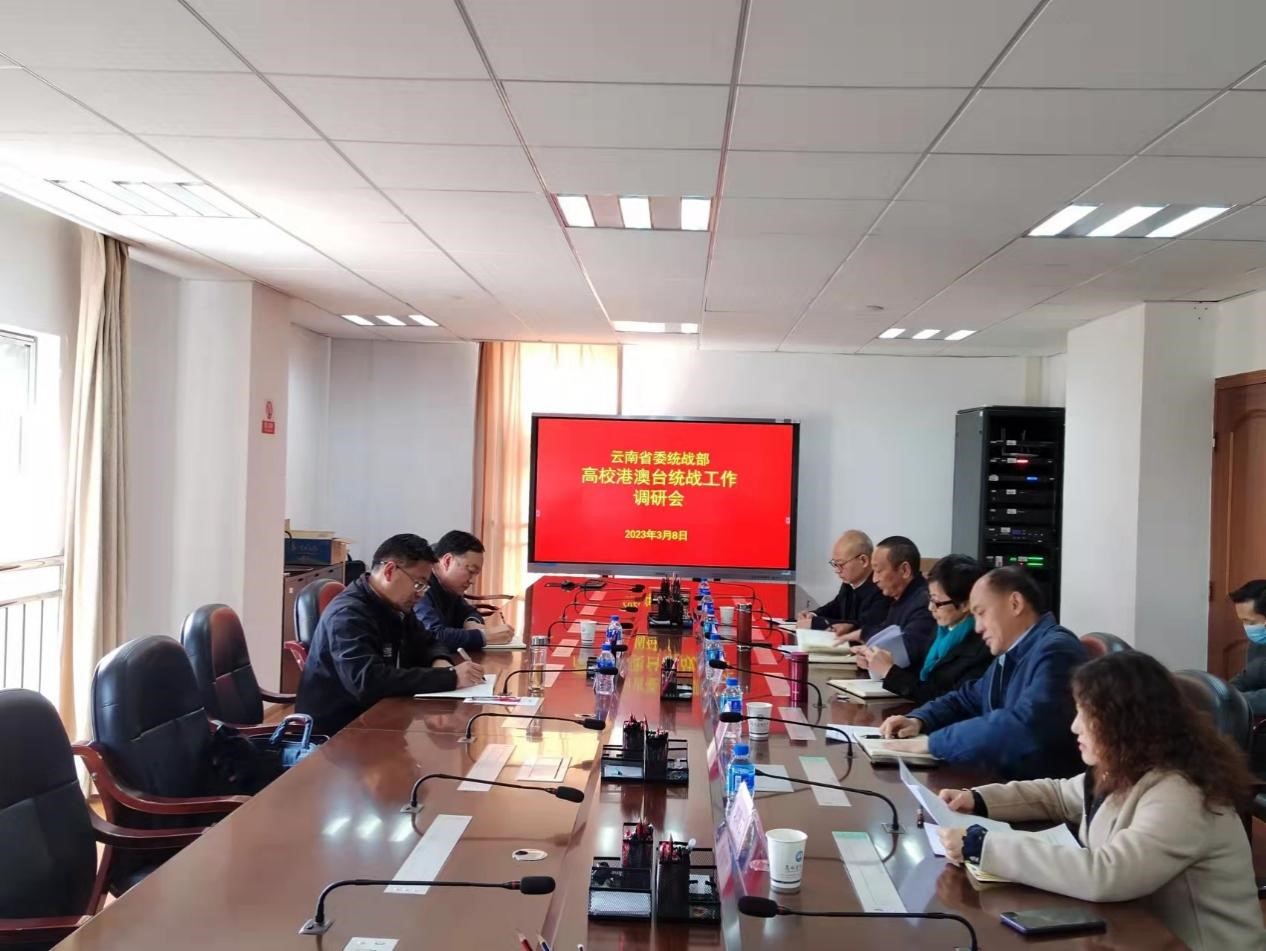 2023年3月9日上午,云南省委统战部赵修春副部长、港澳台处处长一行2人到学校开展港澳台统一战线工作调研。学校党委副书记徐绍琼、副校长解保生,党委统战部、对外交流合作处、口腔医学院党委负责人参加调研会。