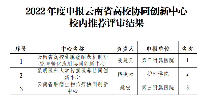附件:2022年度申报云南省高校协同创新中心校内推荐评审结果