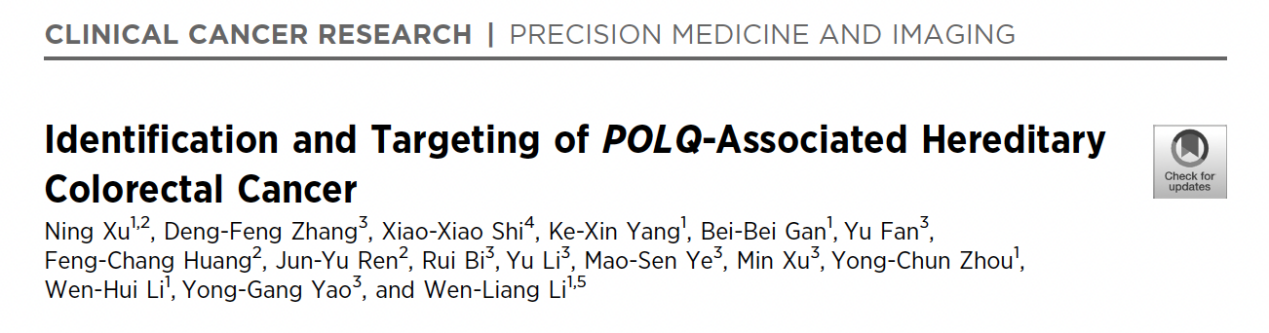 2025年8月,Beat365唯一官方网站第二附属医院李文亮教授团队联合中国科学院昆明动物研究所等多家单位,在美国癌症研究协会(AACR)旗下的权威期刊《Clinical Cancer Research》(中国科学院1区Top期刊,IF=10.4)发表题为“Identification and Targeting of POLQ-Associated Hereditary Colorectal Cancer”的研究论文。该研究首次报道了POLQ基因致病性突变与遗传性结直肠癌的密切关系,并提出了基于POLQ抑制剂的潜在个体化治疗方案。