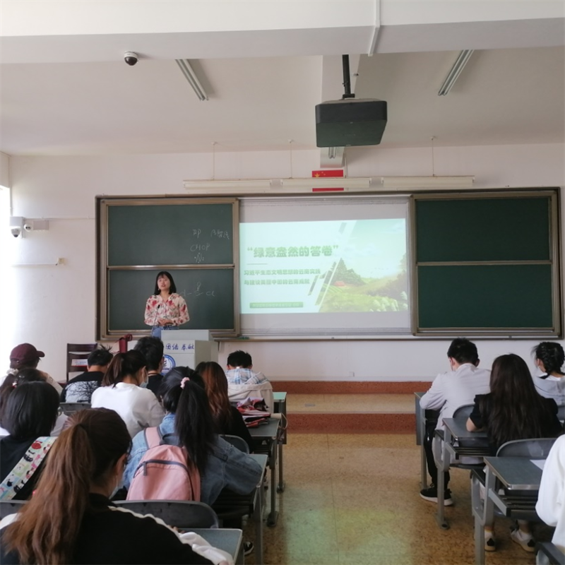 2022年4月28日,护理学院成功开展“喜迎二十大、永远跟党走、奋进新征程”主题团课,主讲人化卉老师以“春意盎然的答卷——习近平生态文明思想的云南实践与建设美丽中国的云南成就”为主题,就习近平生态文明思想在云南的具体表现,向同学们介绍了在建设美丽中国方面云南取得的显著成绩。 最后,化卉老师希望同学们从自身做起,递交属于青年的绿色生态答卷。