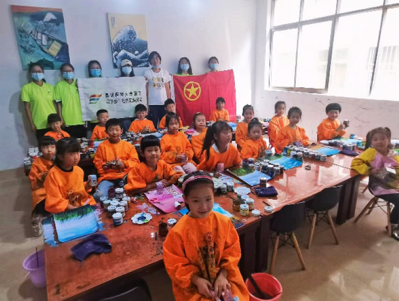 8月3日,实践小队前往芳华小学开展留守儿童专项活动。小队成员从“党史学习引领思想”切入活动主题,围绕留守儿童身心健康开展活动。本次社会实践活动向近三百位参与者分发了定制铅笔以作纪念。