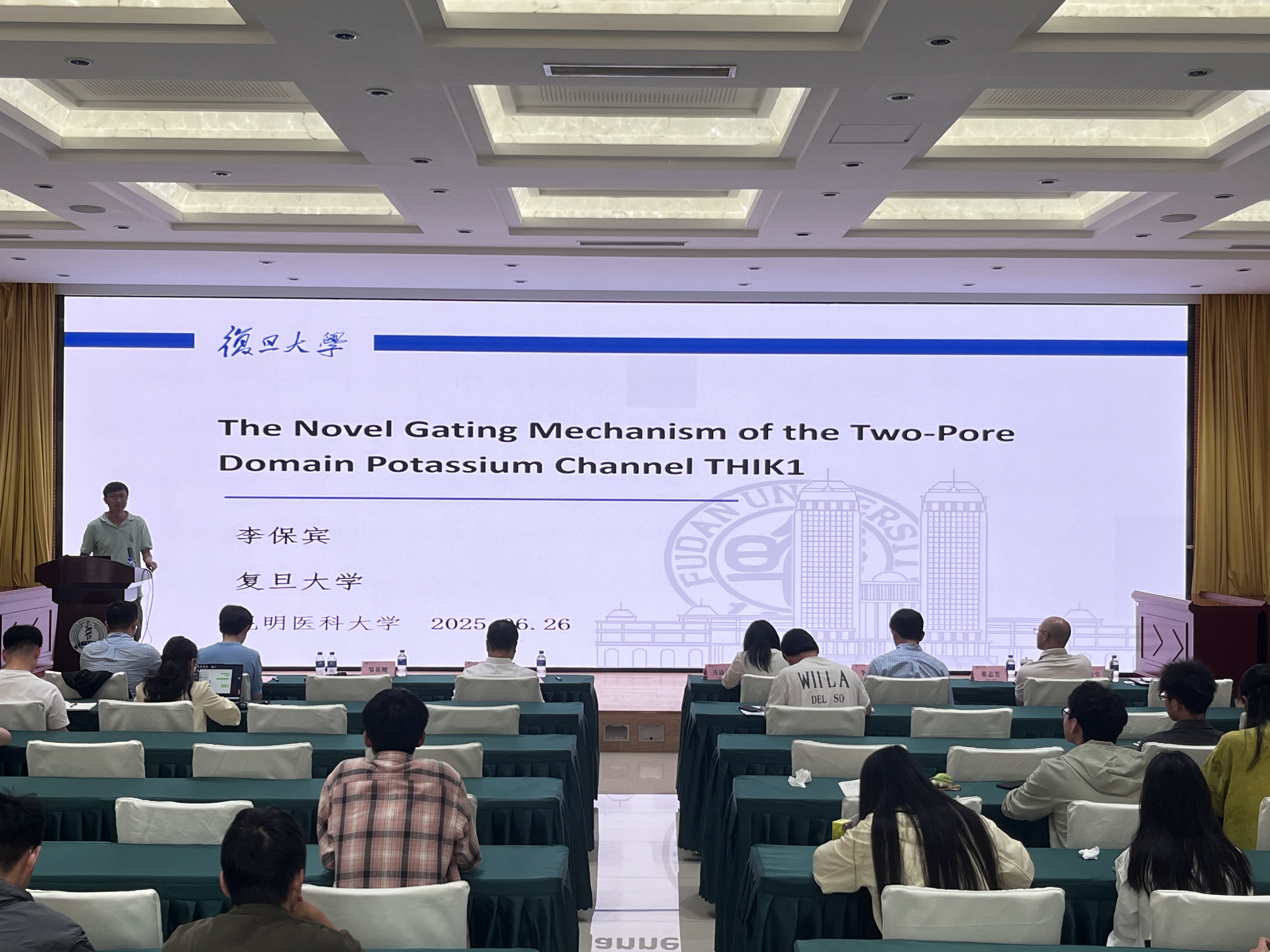 复旦大学脑科学转化研究院李保宾研究员,长期专注于离子通道的结构生物学与功能机制研究。本次论坛为大家分享了双孔结构域钾离子通道 THIK1 门控机制的结构解析,以双孔结构域钾离子通道 THIK1 为例,他借助冷冻电镜、电生理学等先进技术手段,深入解析通道的门控机制。